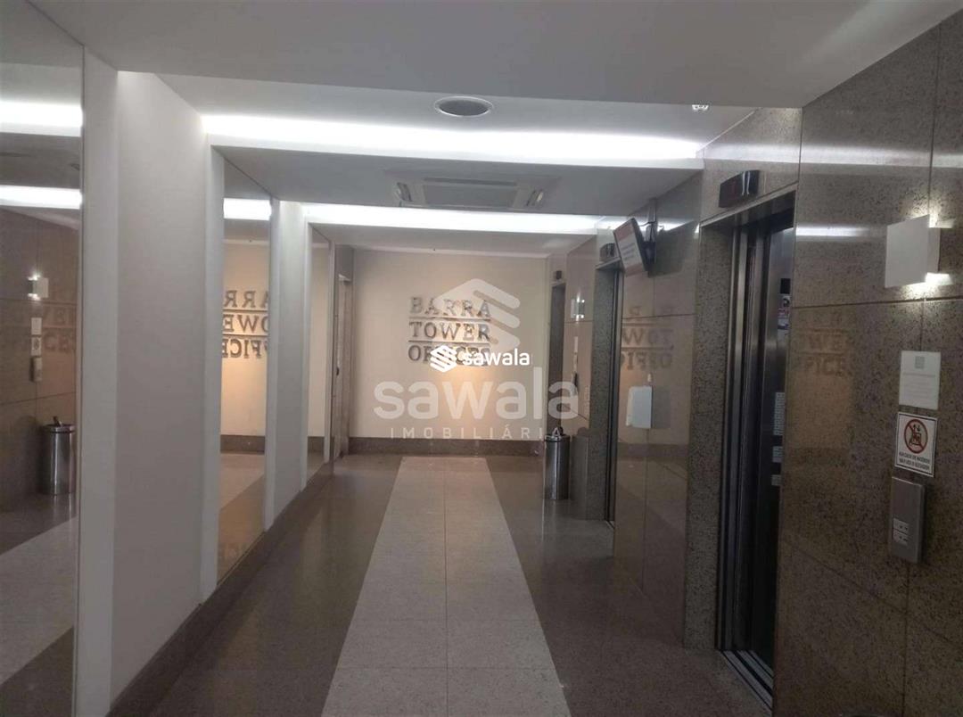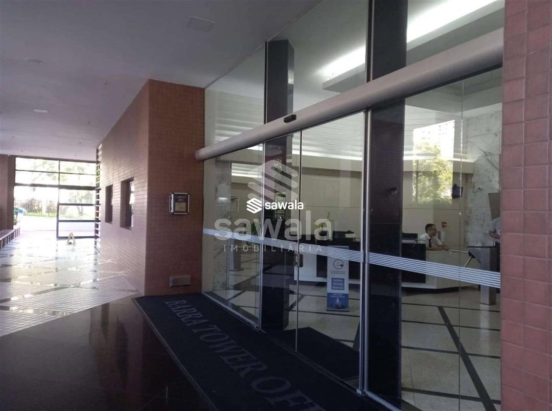 Excelente sala comercial Barra Tower.Sala com dois ambientes, sendo sala de espera integrada e sala principal com porta em madeira ficando assim um espaço bem reservado, para atendimento toda mobilhada, piso  caperte, lavabo.Dois auditórios, sala de reunião, espaço gourmet, portária 24 hs com segurança presencial, catraca com idetificar facial e 4 elevadores.