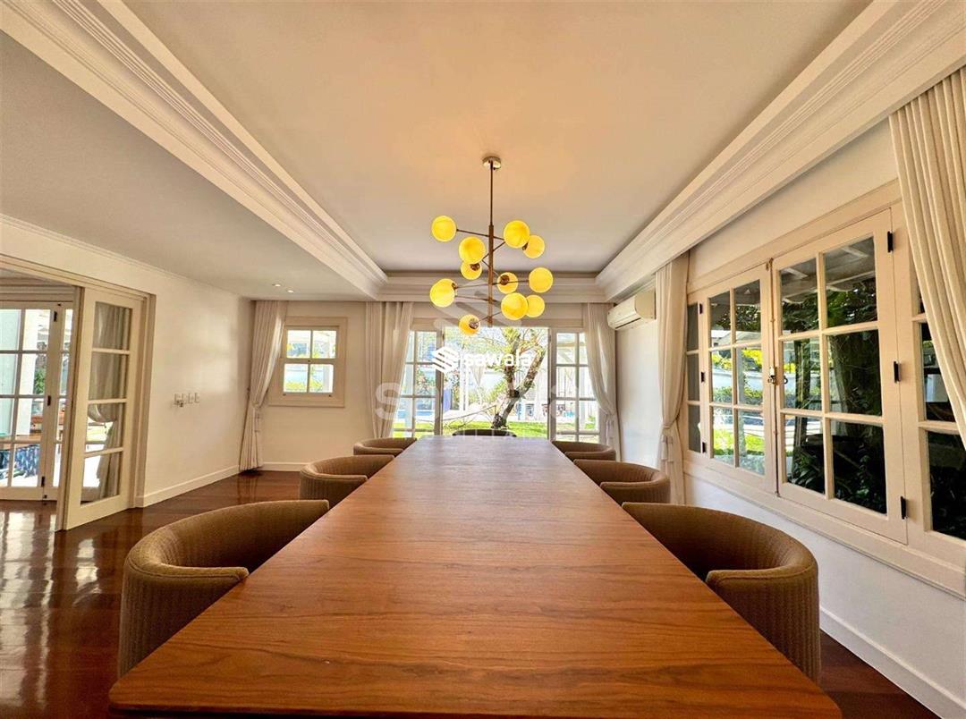 EXCELENTE Casa Duplex - 6 suítes - 700m² área construída - 1000m² de terreno - Condomínio MALIBU - Barra da TijucaPRIMEIRO PAVIMENTO:Sala em três ambientes piso tábuas corrida com dois acessos a área externa, living, lavabo, suite térrea, transformada em escritório, copa cozinha planejada, lavanderia, duas dependências completas.Ar condicionado split em todos os cômodos. SEGUNDO PAVIMENTO:Quatro suítes todas com varanda e banheira, sendo duas dela com closet, as demais com armários planejados.Suite master com closet, hidromassagem, cuba dupla e duas duchas.ÁREA EXTERNA:Edicula com suite Paisagismo em toda lateral da casa. Lazer: Piscina e banheiro de apoio.CONDOMÍNIO:Sistema de segurança armada 24 horas, circuito fechado de monitoramento, cerca elétrica, duas quadras de tênis saibro, quadra poliesportiva, churrasqueira e playground.