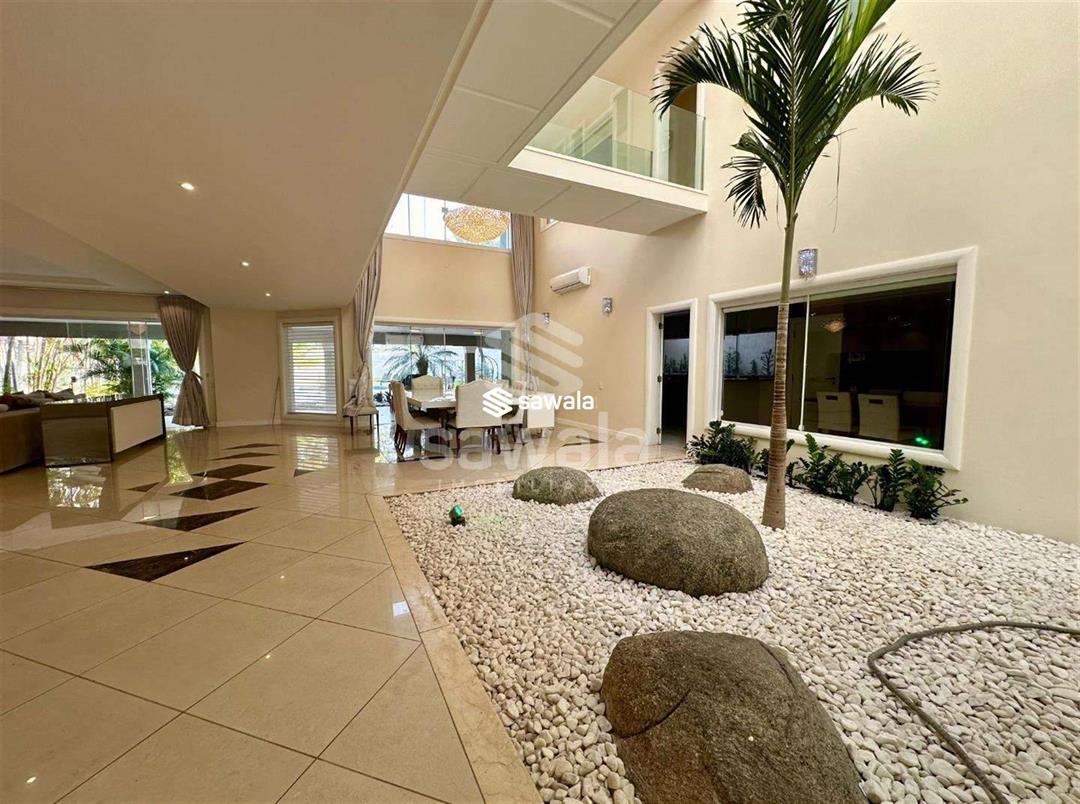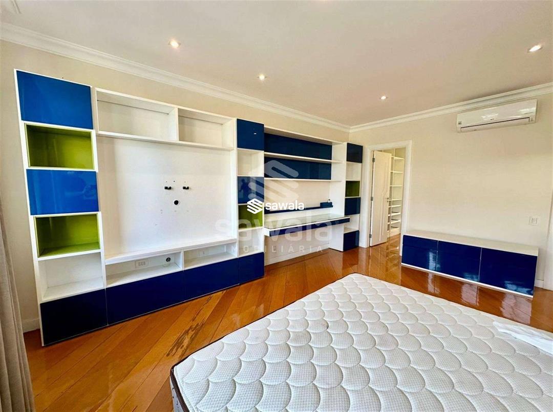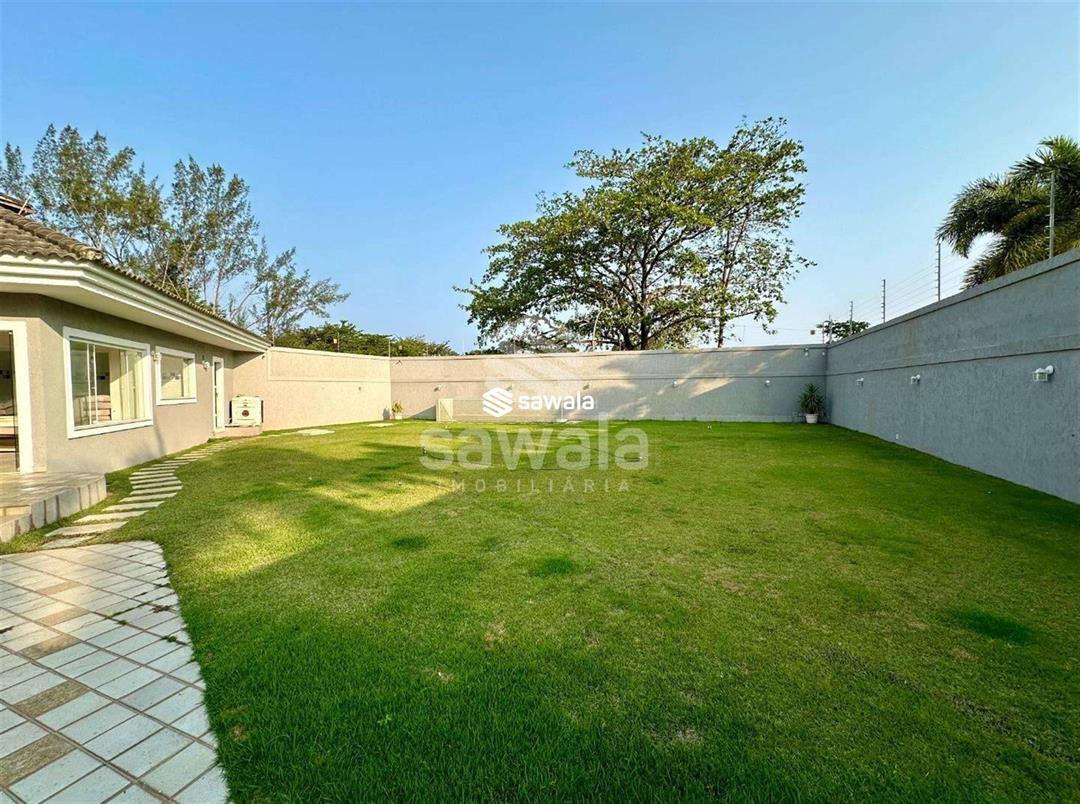 MANSÃO - NOVO LEBLON - VAZIA - EXCLUSIVIDADE - 1400m² de terreno - área construída de 1200m² - 5 suítes - 2 dependências. 1º Pav - Hall social com pé direito duplo, 1 suíte, sala de estar em 3 ambientes, um dos ambientes também possui pé direito duplo, jardim de inverno, lavabo decorado, copa cozinha planejada, lavanderia com dois acessos, 2 dependências com 1 banheiro de serviço.2º Pav - 4 suítes, todas com closet e equipadas com A/C Split, suíte master com 60m², varanda privativa, closet e banheiro com hidromassagem e cuba dupla.3º Pav - Sotão, subdividido em 2 ambientes: sala de cinema e espaço adulto, lavabo e varanda com vista para Lagoa de Marapendi.Área externa - Espaço gourmet coberto, piscina adulto e infantil com sistema de hidromassagem, sauna, ,gramado, chuveiro de apoio e lavabo. Condomínio com Clube que possui: parque aquático, 2 piscinas, sauna, academia moderna, campo de futebol, quadras de tênis e vôlei, playground, churrasqueira, salão de festas, restaurante , pista de skate.Sistema de segurança 24 h com monitoramento, Ônibus exclusivo, balsa para praia, bosques e jardins. Próximo : 2 Mall com diversos serviços, lojas e restaurantes, 2 Escolas, Igreja, Shopping, Supermercados, Estação BRT, Transporte Público