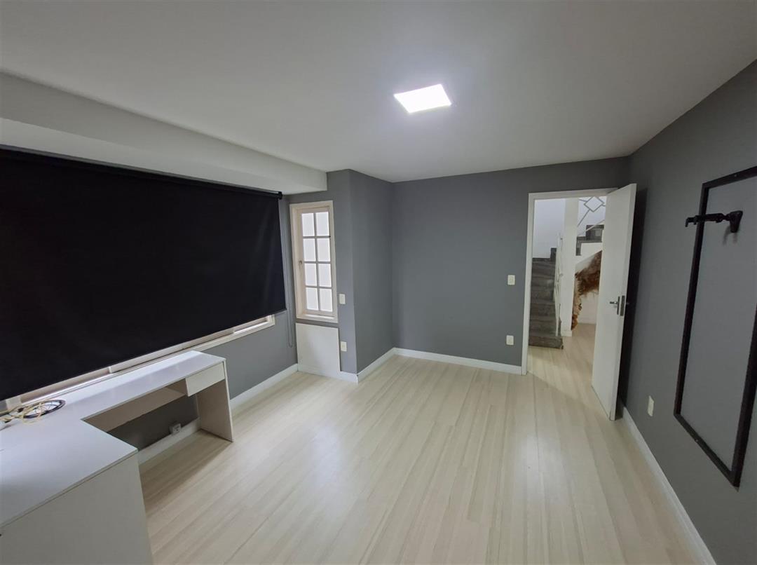 O segundo pavimento abriga 3 quartos, incluindo uma suíte com closet e um banheiro social.