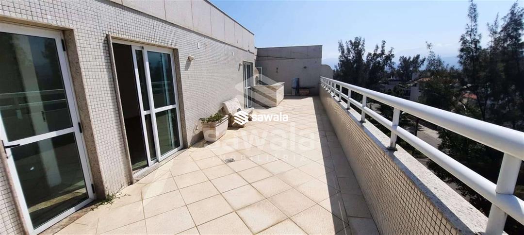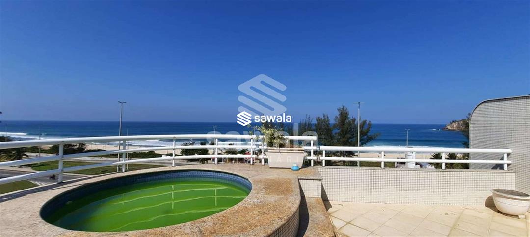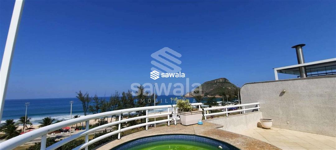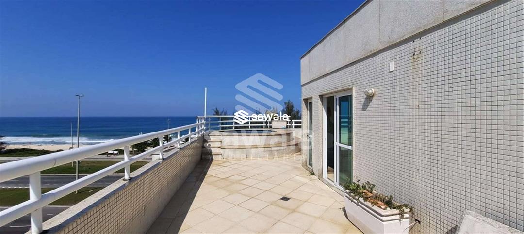 Excelente cobertura duplex, frontal Mar - Sol da Manhã - Recreio dos Bandeirantes, 4 qts sendo 3 suítes todas com varandas, ampla sala em 2 ambientes, varanda, lavabo, cozinha planejada, dependência de serviço completa,2° andar, ampla sala, banheiro, Varanda, piscina, ducha, área gourmet, churrasqueira.4 vagas de garagem.Condomínio com salão de festas, Hidromassagem, porteiro de segunda a sábado.