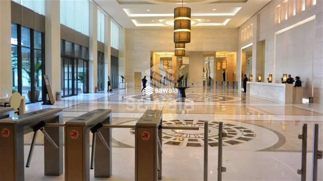 Sala toda reformada, em porcelanato e com projeto de iluminação, split, recepção, lavabo , sol da manhã e vista livre no melhor empreendimento de Barra da Tijuca com 1 vaga de direito
