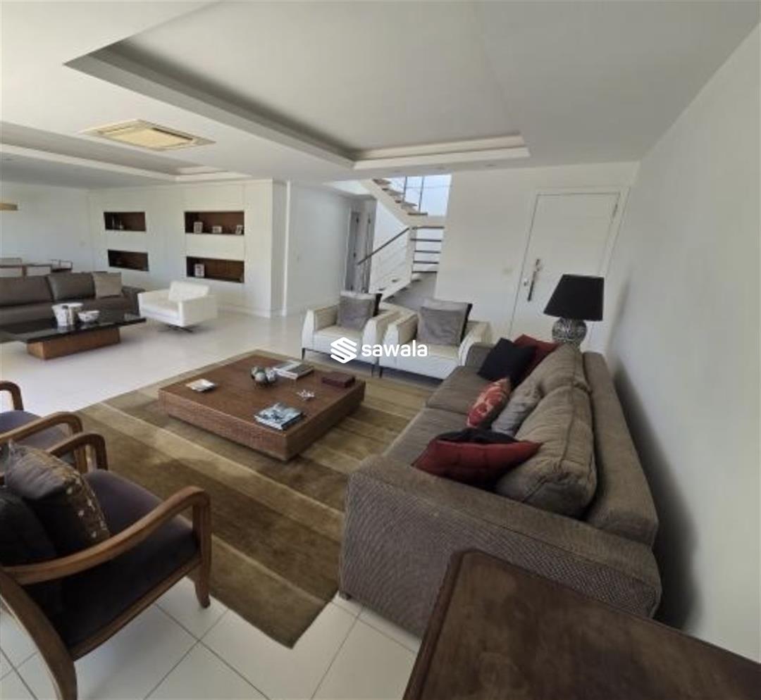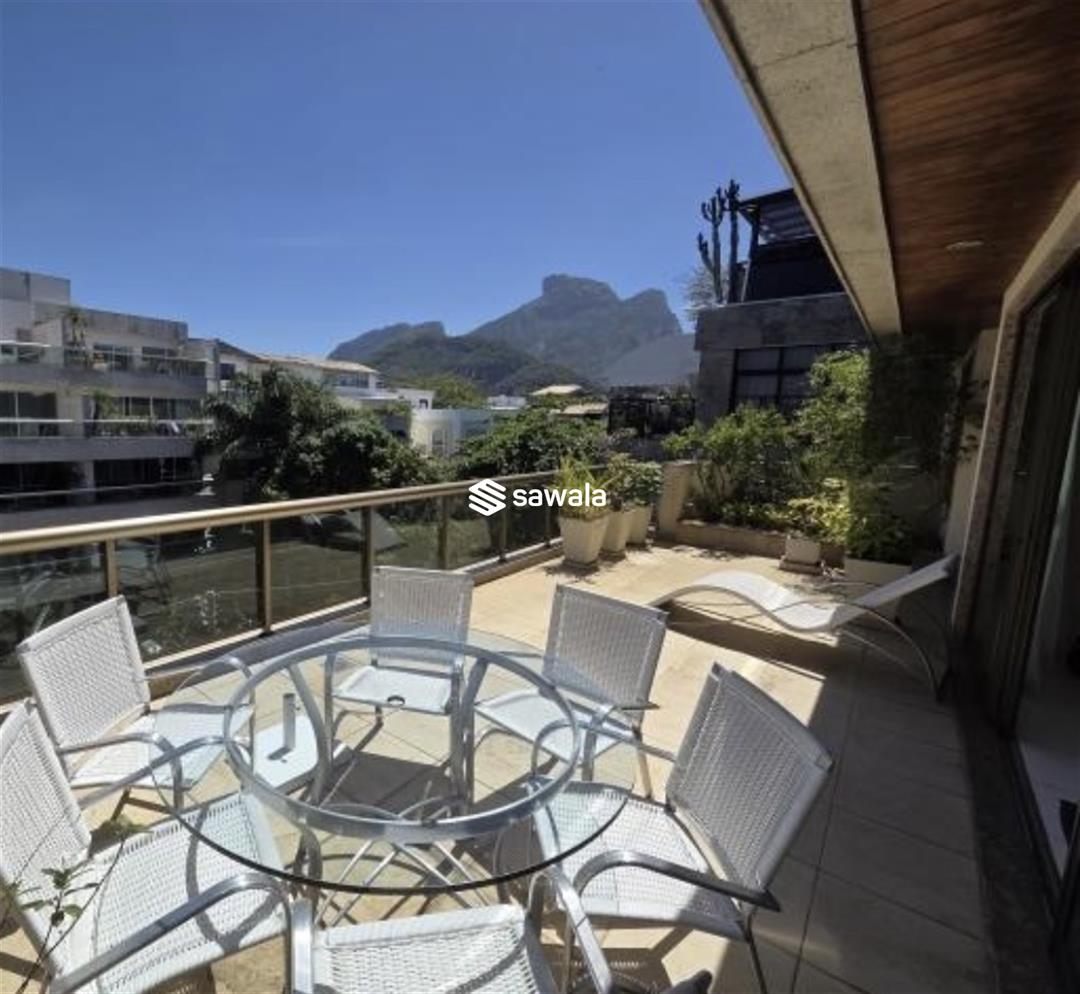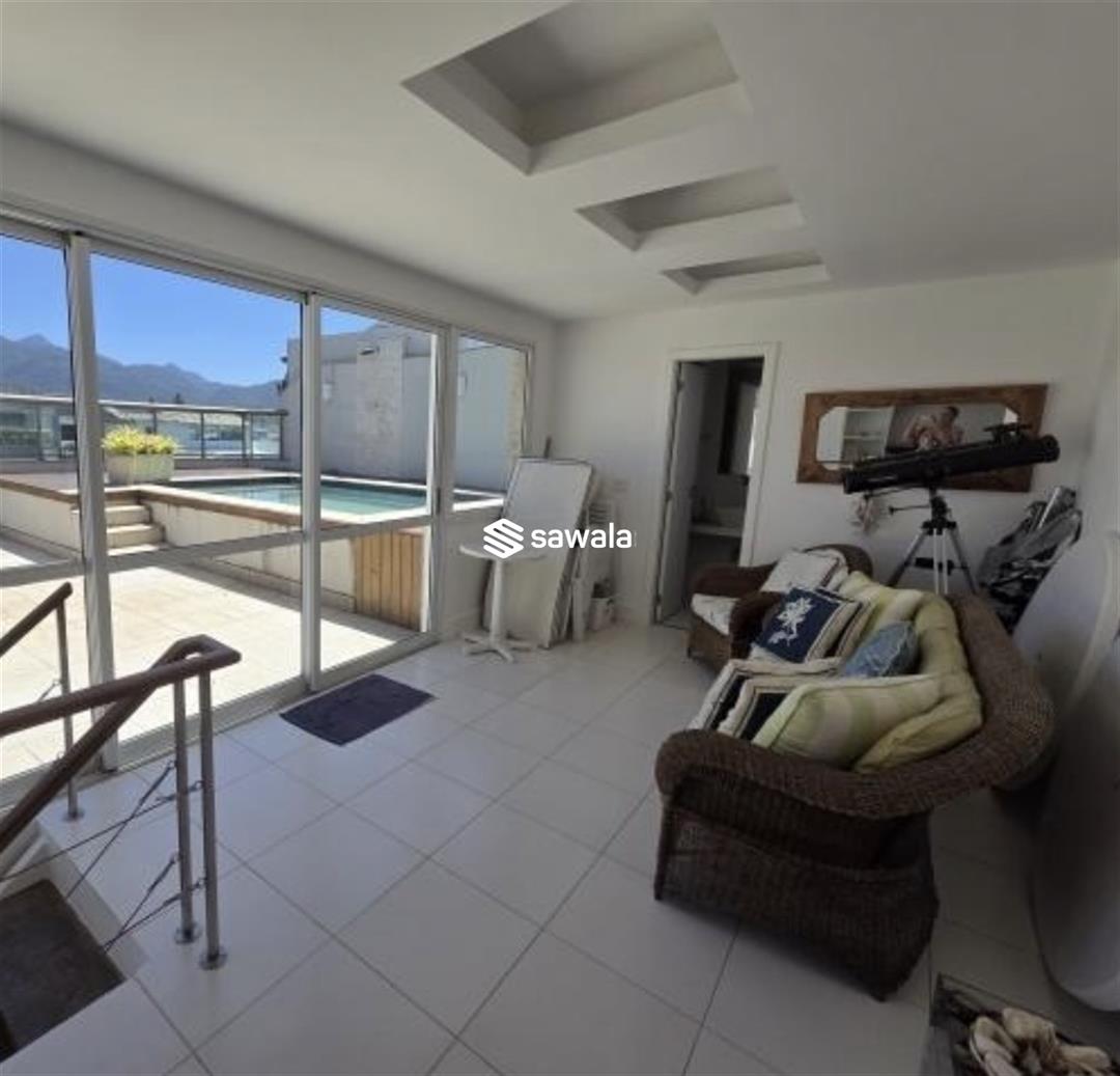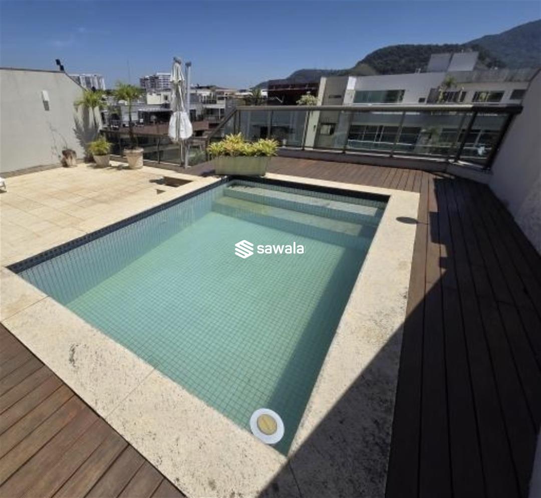 A localização é estratégica, próxima à Praça do Ó e à Praia da Barra (Postos 2 e 3).Primeiro Pavimento: Amplo salão em 4 ambientes distintos, perfeito para receber e relaxar. Lavabo elegante para maior comodidade. Varanda espaçosa, ideal para momentos de contemplação. 4 suítes luxuosas, sendo 2 com closets, proporcionando privacidade e organização. Cozinha equipada com armários planejados, otimizando o espaço. Área de serviço funcional e dependência completa.Segundo Pavimento: Salão amplo com espaço íntimo, perfeito para relaxar. Banheiro social completo. Área externa exuberante, projetada para receber amigos e familiares em grande estilo. Churrasqueira para momentos de lazer. Piscina convidativa em deck, com vista livre para a Pedra da Gávea e as montanhas.Comodidades Adicionais: 5 vagas de garagem para sua total comodidade. Box exclusivo para guardados.Localizada no 3º andar, esta cobertura oferece um estilo de vida único, com fácil acesso a tudo o que a Barra da Tijuca tem de melhor