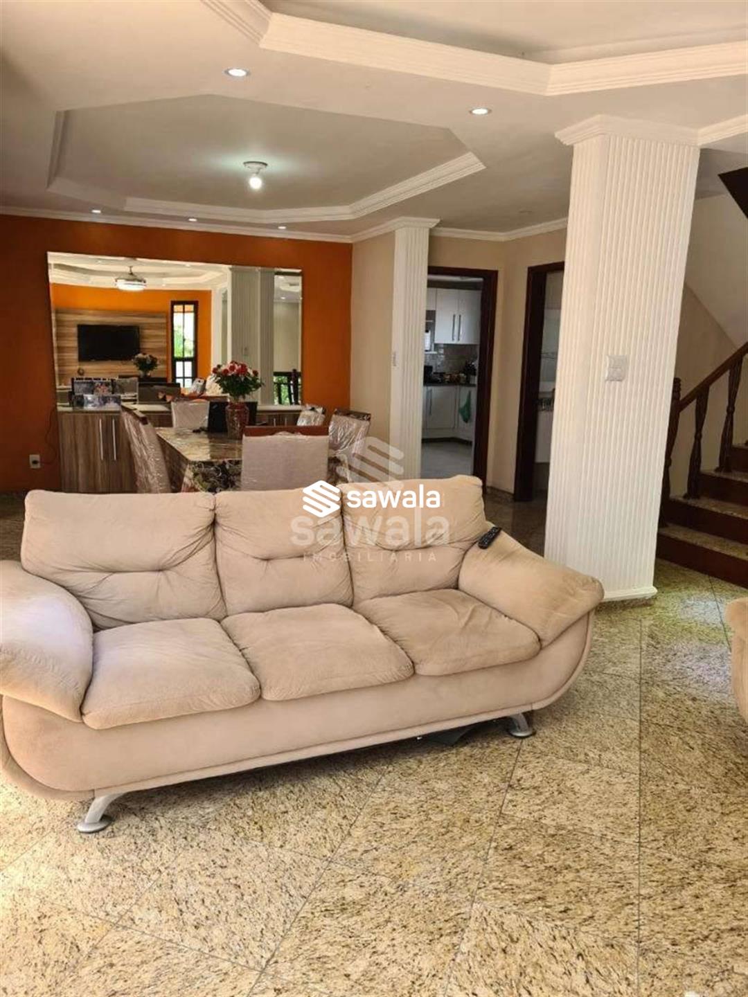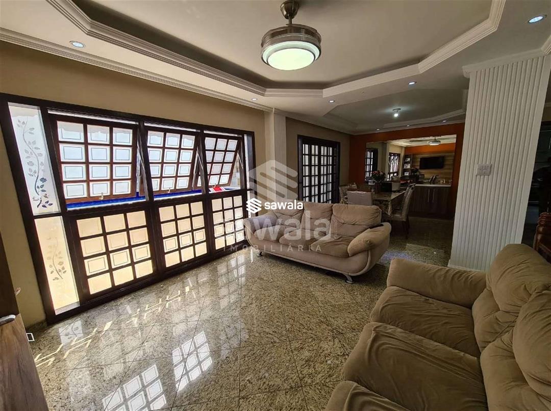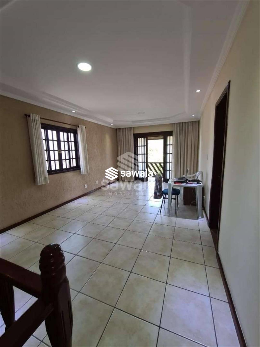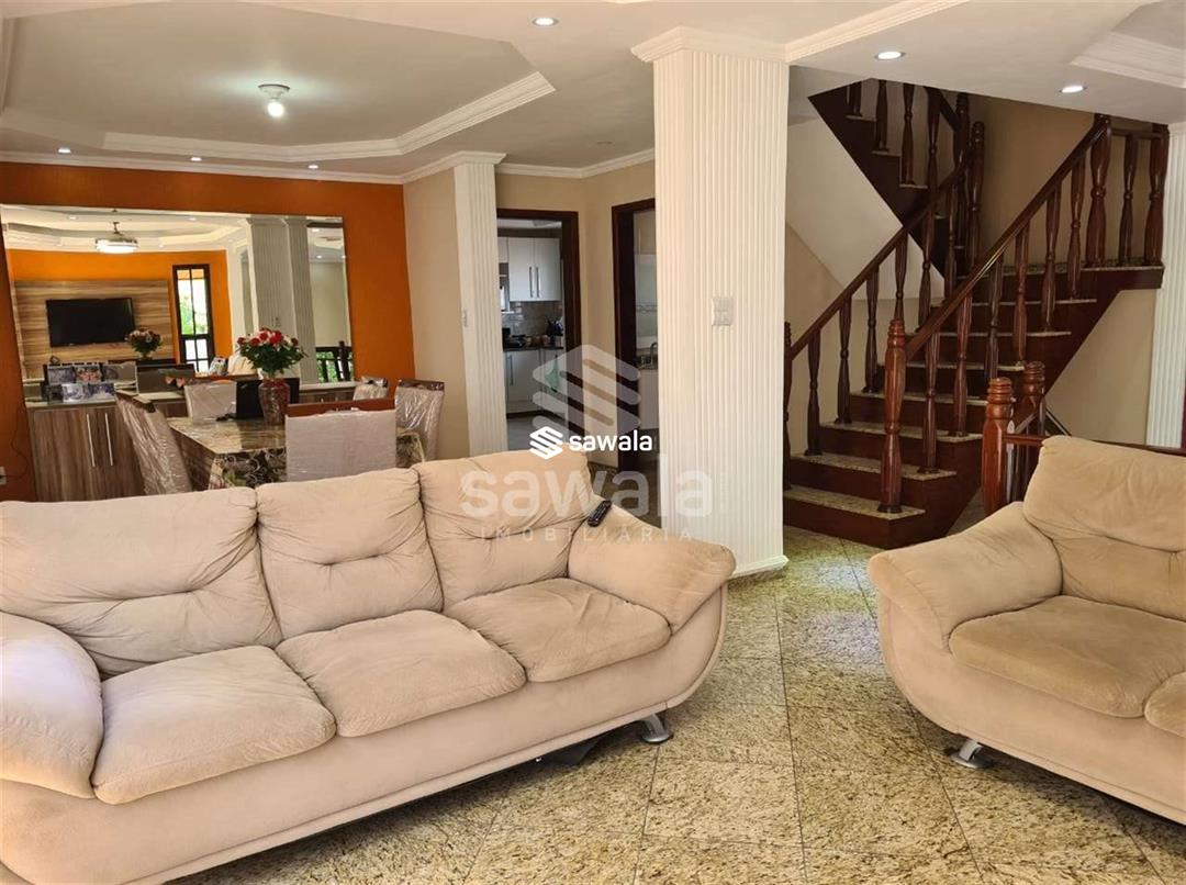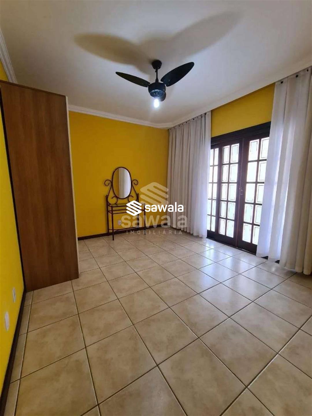 Pavimento superior com 3 suítes (com armários), sendo 2 com varanda + 3 quartos, banheiro social e terraço com churrasqueira e salão de festas (com acesso pela parte externa)