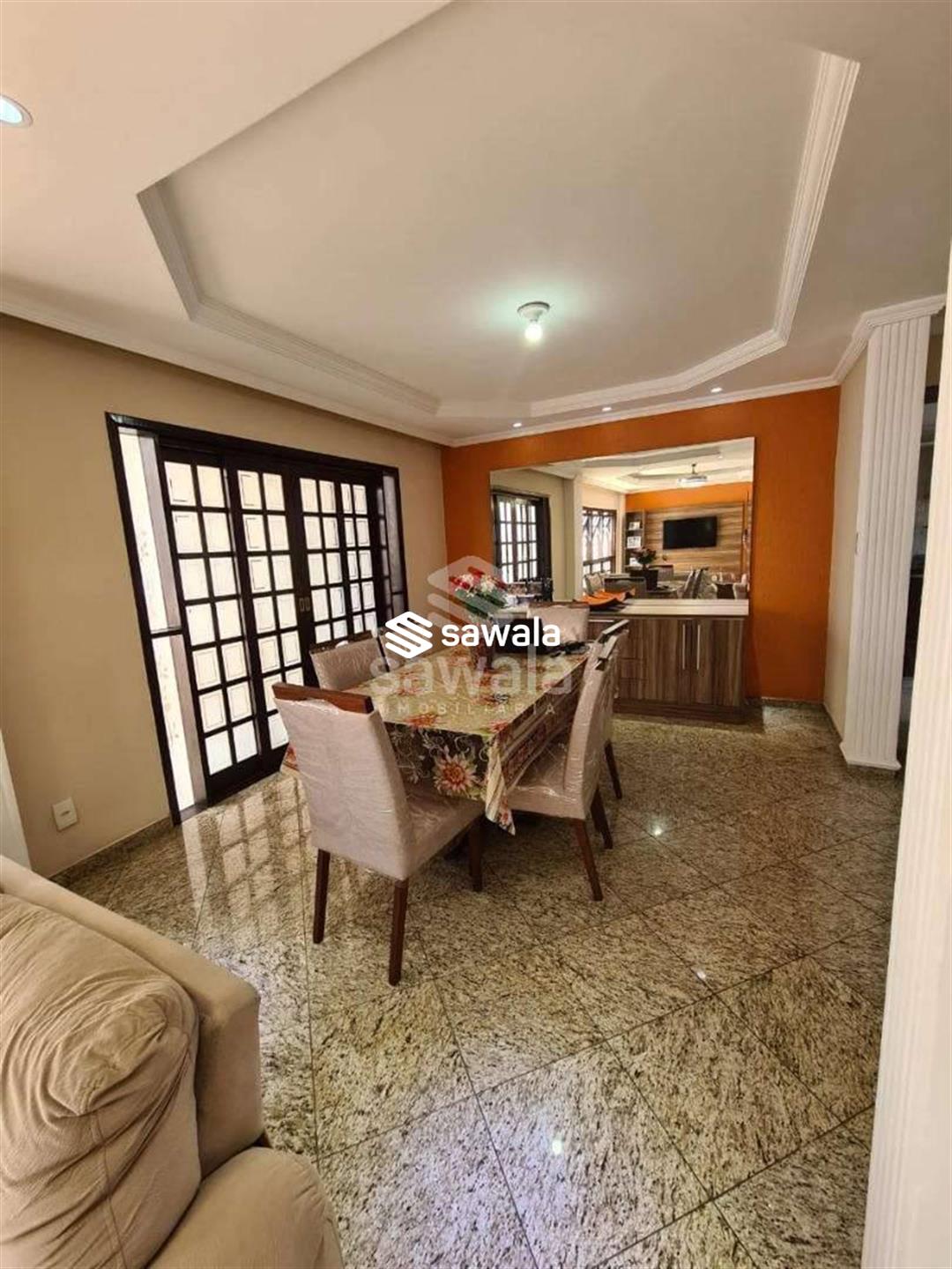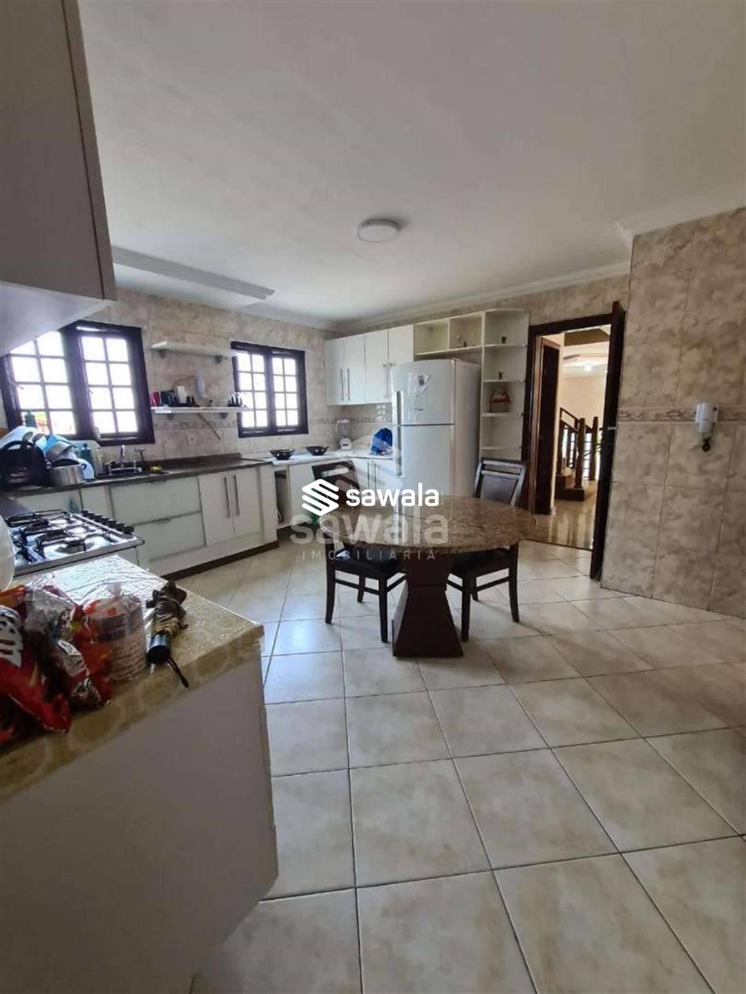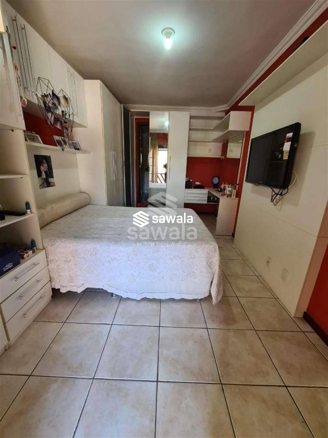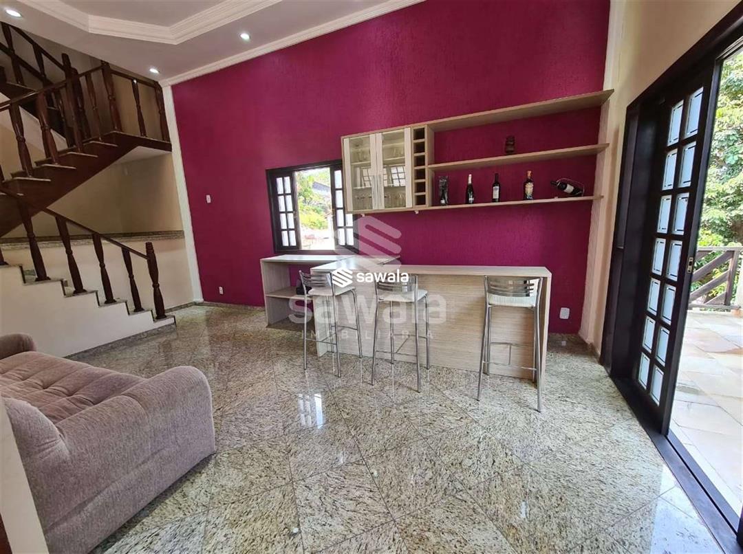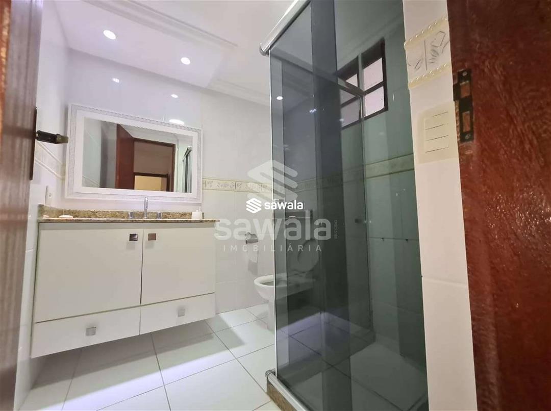 Pavimento superior com 3 suítes (com armários), sendo 2 com varanda + 3 quartos, banheiro social e terraço com churrasqueira e salão de festas (com acesso pela parte externa)