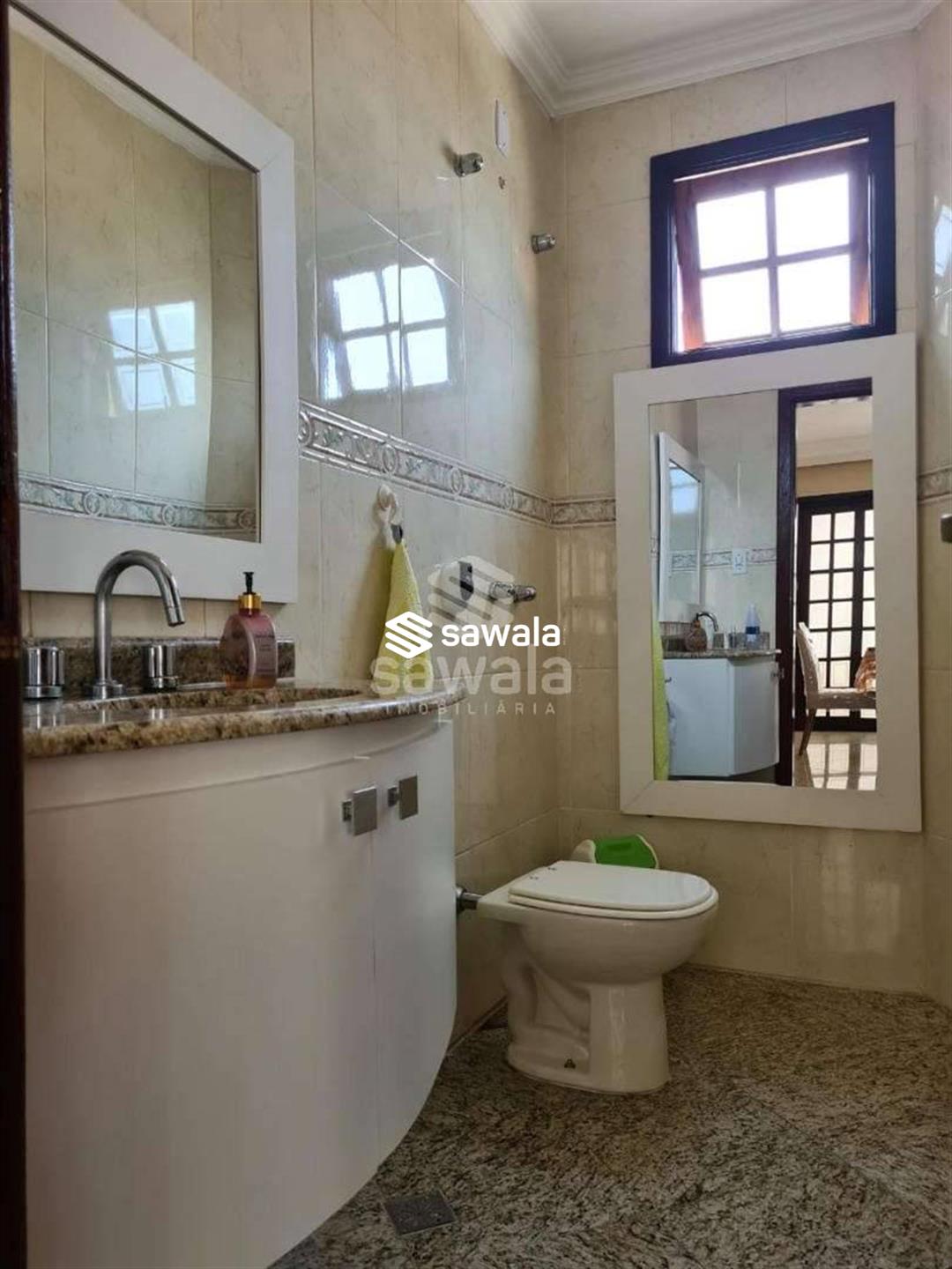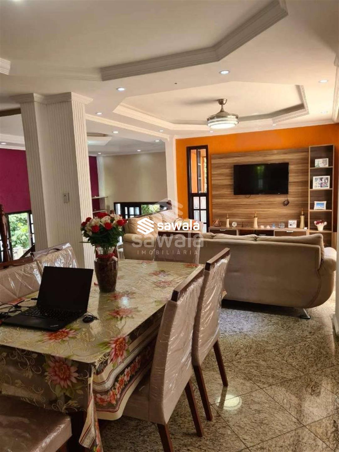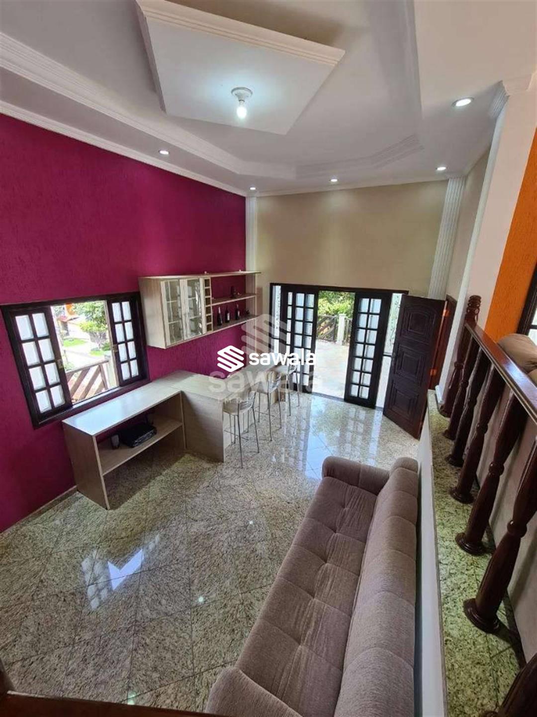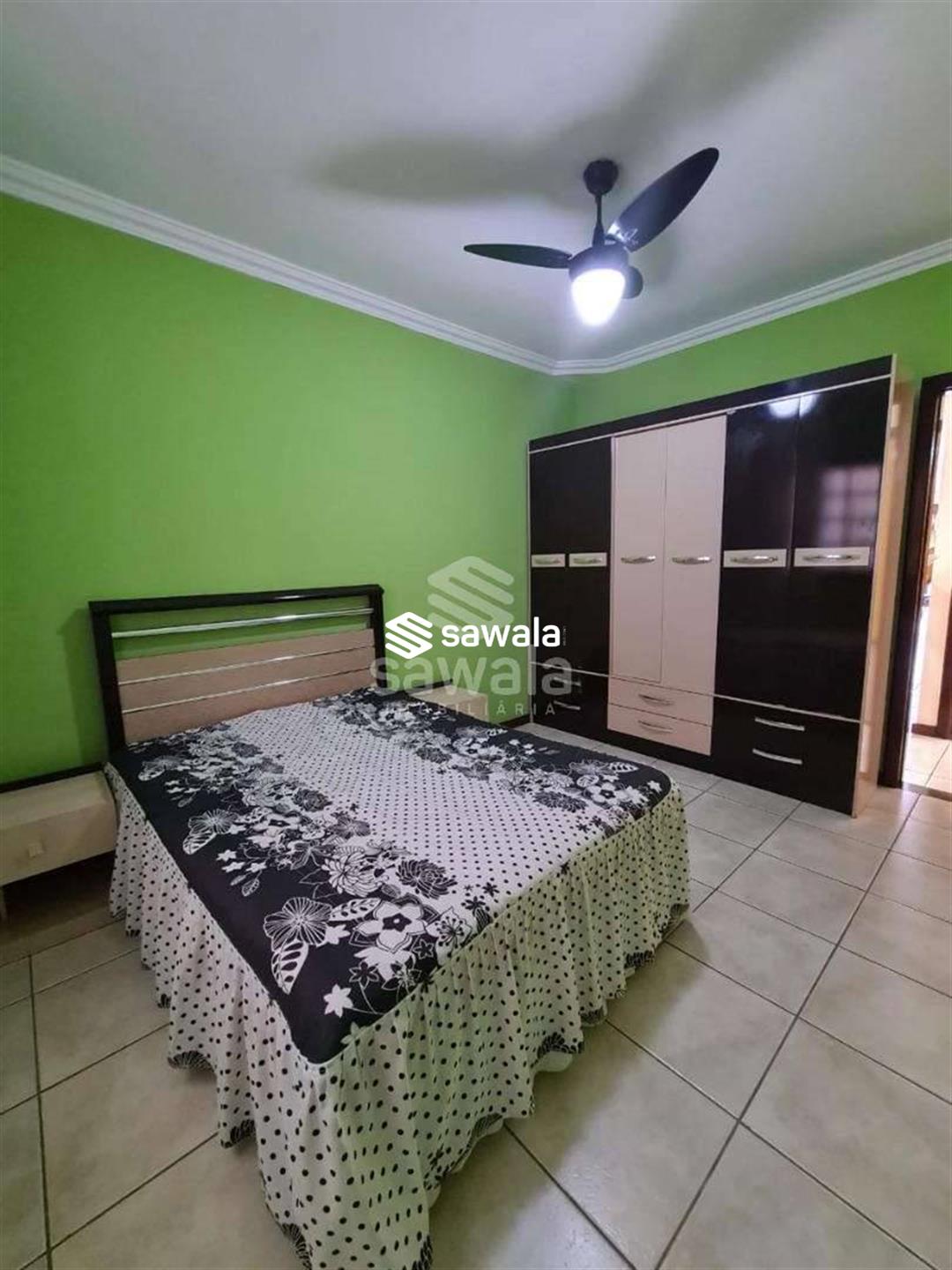Pavimento superior com 3 suítes (com armários), sendo 2 com varanda + 3 quartos, banheiro social e terraço com churrasqueira e salão de festas (com acesso pela parte externa)