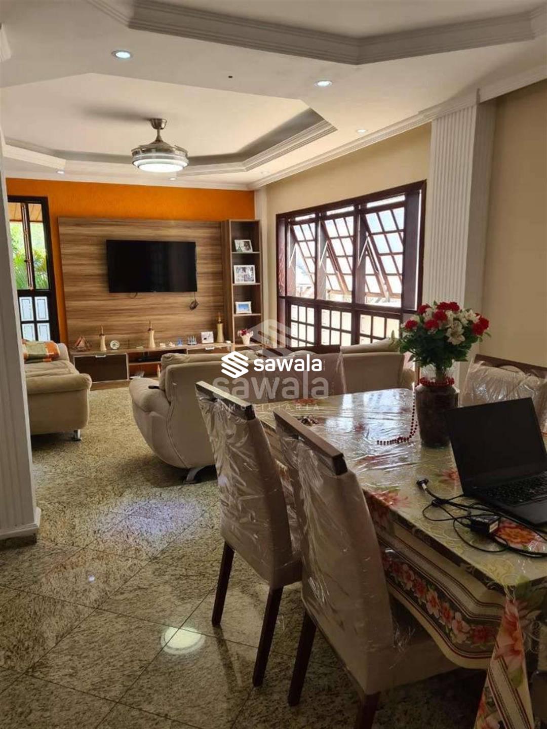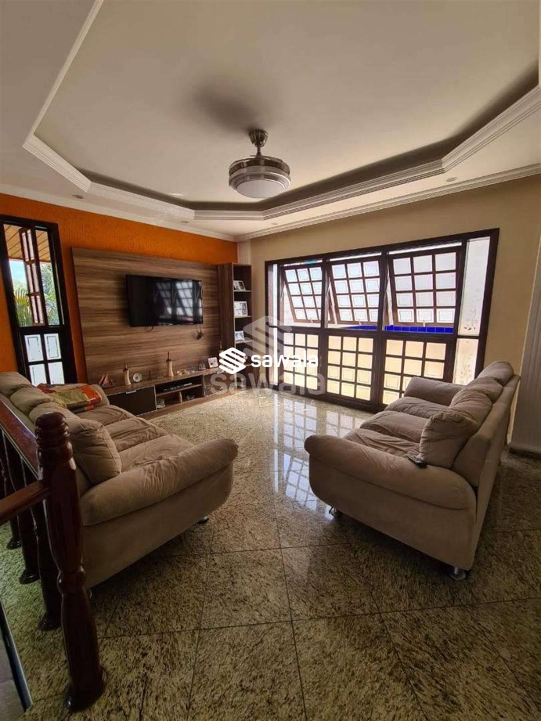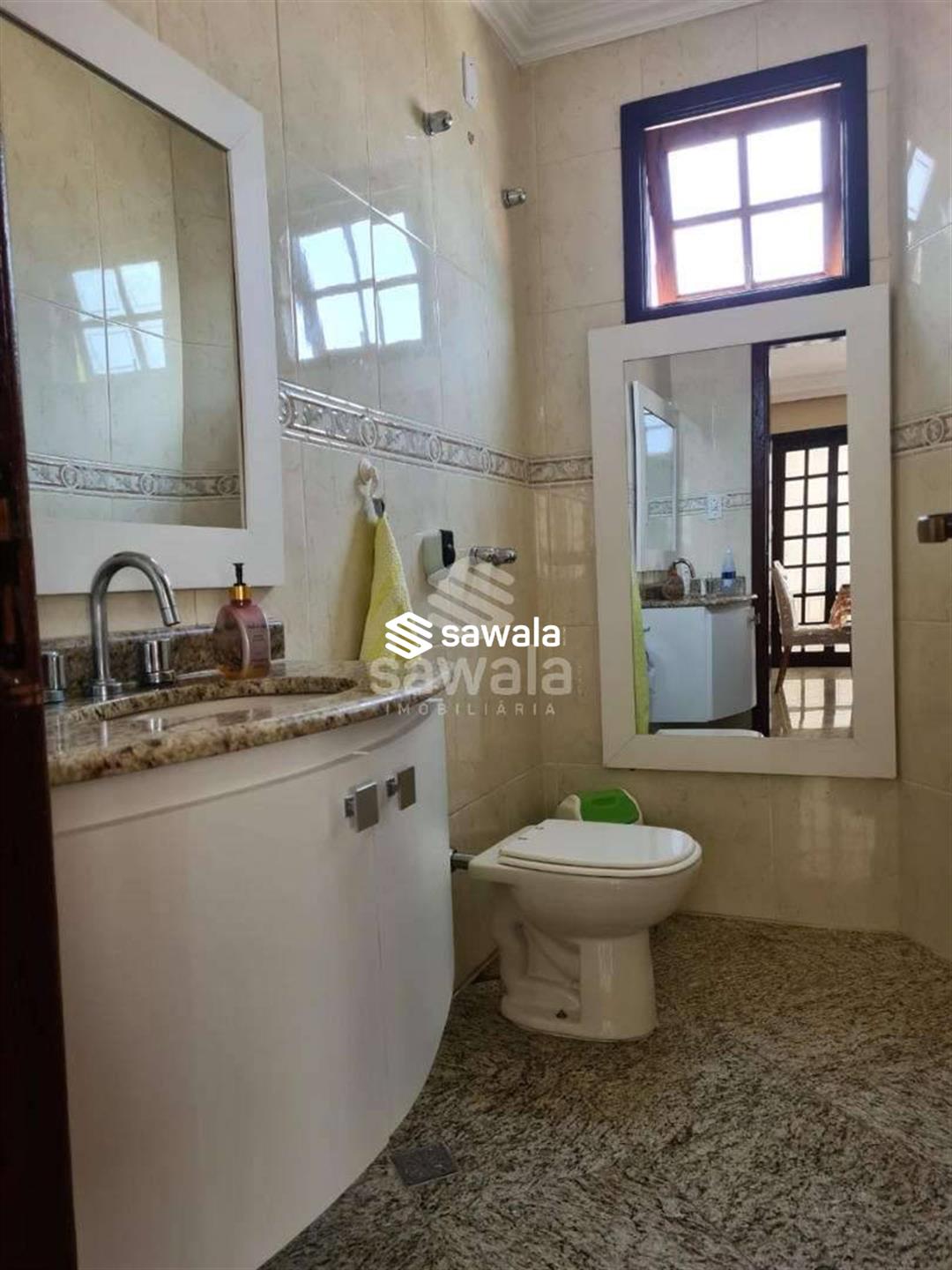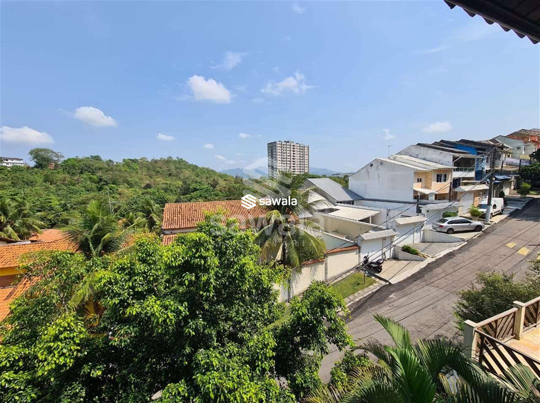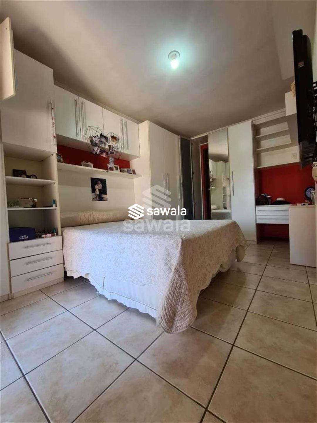 Pavimento superior com 3 suítes (com armários), sendo 2 com varanda + 3 quartos, banheiro social e terraço com churrasqueira e salão de festas (com acesso pela parte externa)