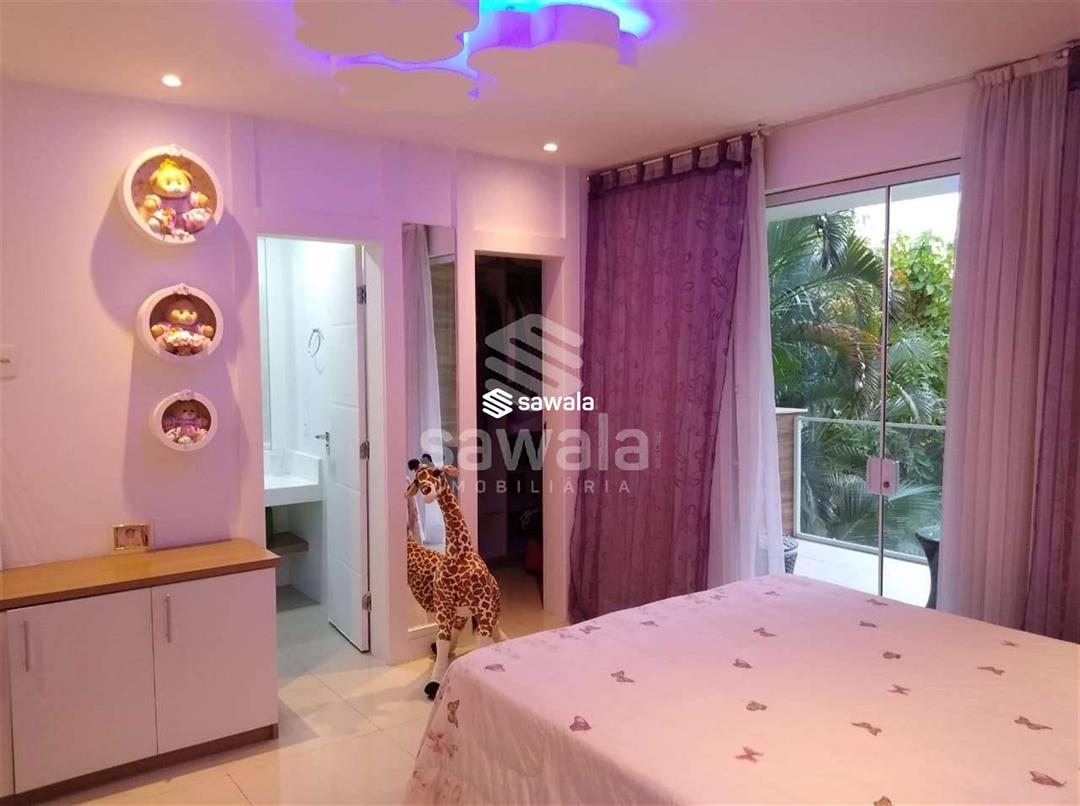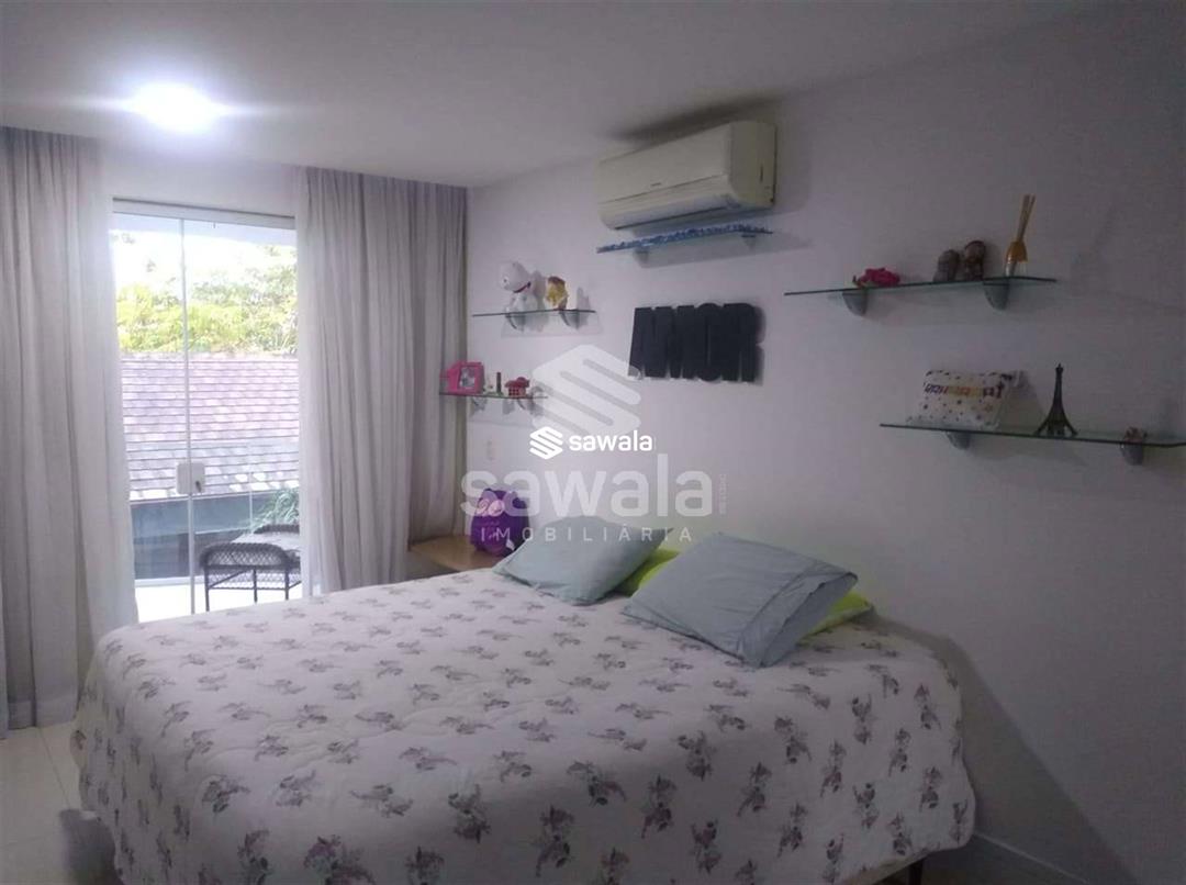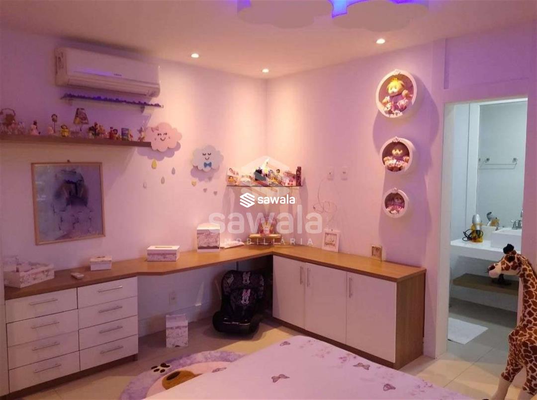 Possui ar condicionado, armários planejados na cozinha e embutidos, churrasqueira, jardim, área de serviço, interfone, sala de almoço, sala de jantar, sala íntima e varanda. O Condomínio Quintas do Rio oferece segurança 24 horas, portaria 24 horas, acesso 24 horas, clube exclusivo e diversas opções de lazer. Com 2 vagas de garagem e vista para a frente, esta casa é a oportunidade perfeita para viver com conforto e segurança em um dos melhores condomínios da Barra da Tijuca. Localização: Condomínio Quintas do Rio, Barra da Tijuca, Rio de Janeiro.