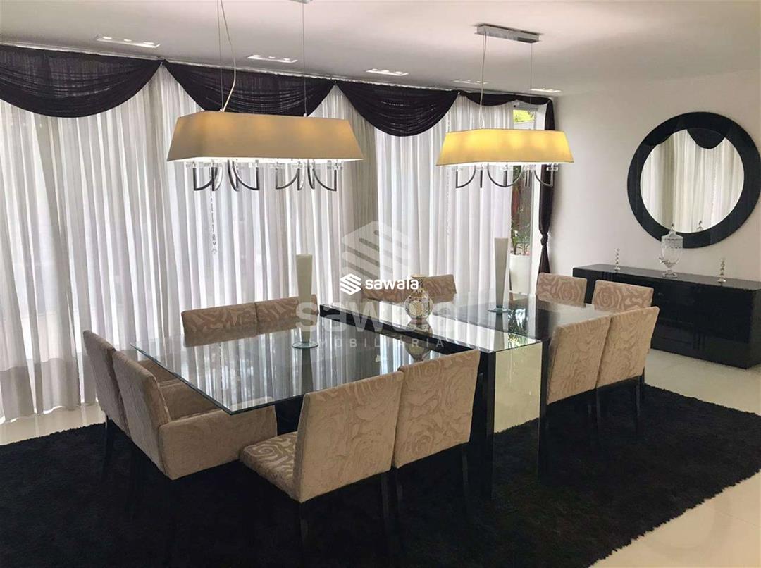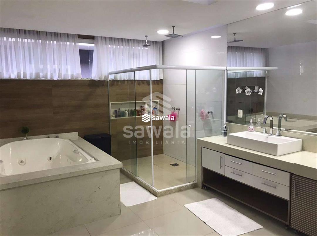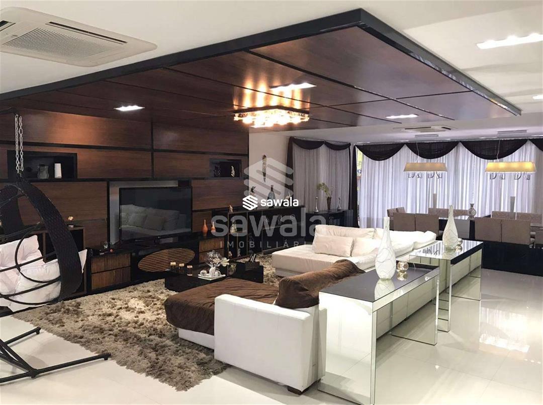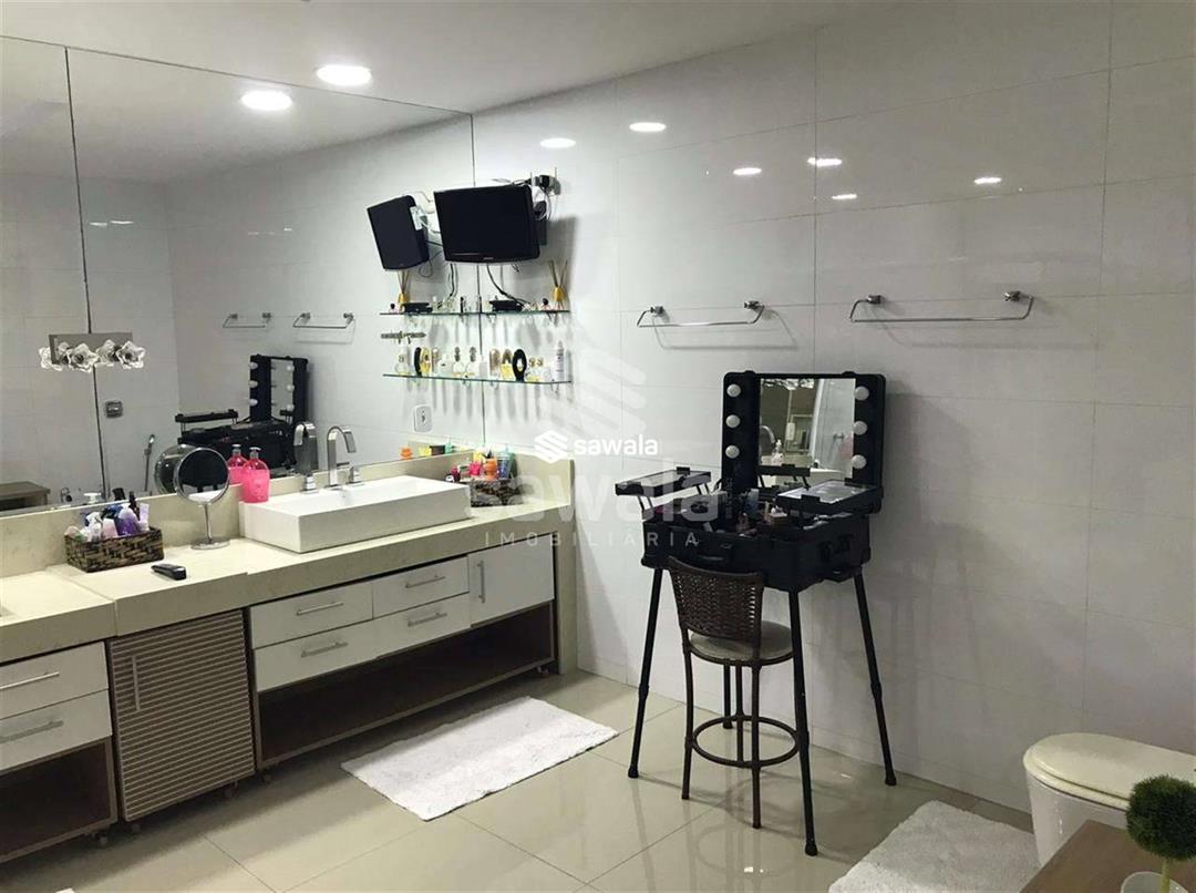 Um refúgio de luxo e conforto, projetado para proporcionar momentos inesquecíveis. A residência oferece 5 suítes espaçosas, incluindo uma suíte master com varanda privativa, sala de banho com hidromassagem, chuveiro individual, box blindex, pia com duas cubas e um amplo closet. O primeiro piso impressiona com piso em porcelanato, sala em dois ambientes, bar elegante e lavabo decorado