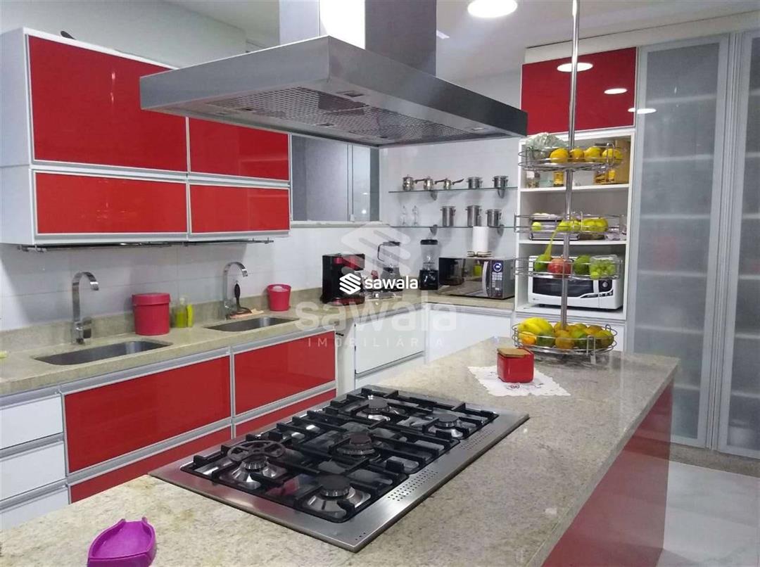 A copa cozinha planejada com ilha, a lavanderia, a despensa e a dependência completa otimizam a funcionalidade