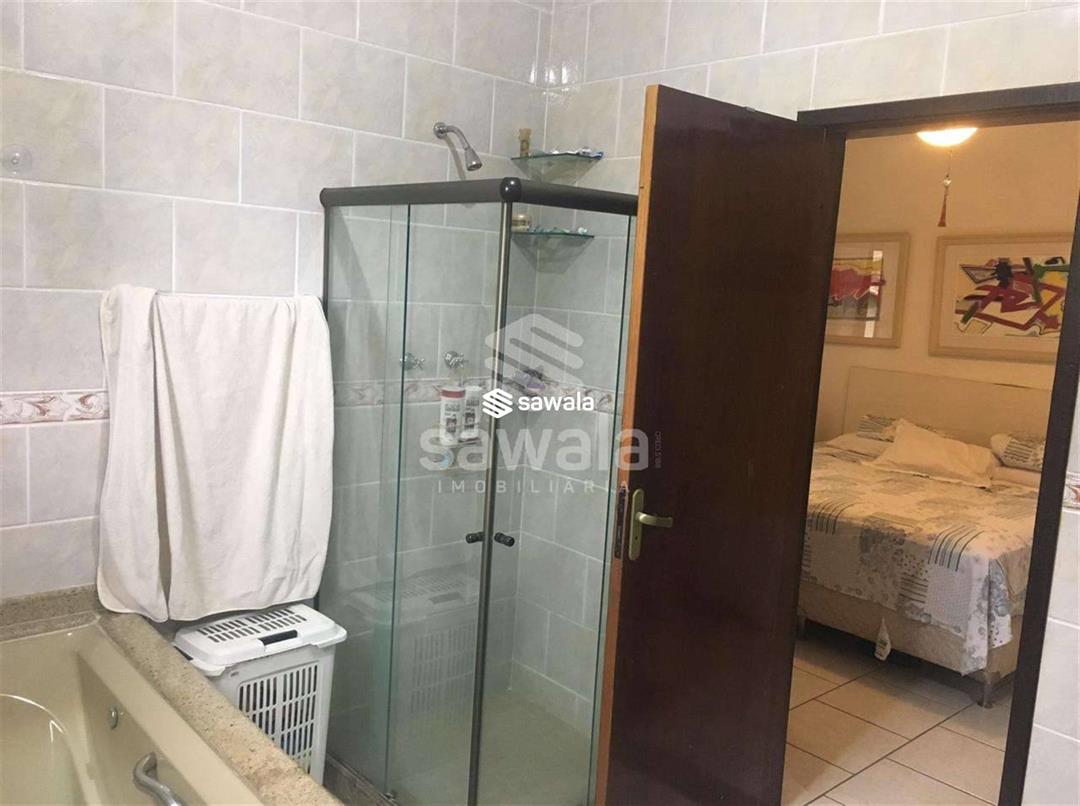 Varanda ampla na porta de entrada.No segundo pavimento; suíte com closet e banheiro com hidromassagem, 2 quartoscom armários, banheiro amplo e todos os cômodos com varanda.Área de lazer: churrasqueira com 50m de área coberta e banheiro , piscina de 18.000l,embaixo da casa salão também com banheiro e pia..