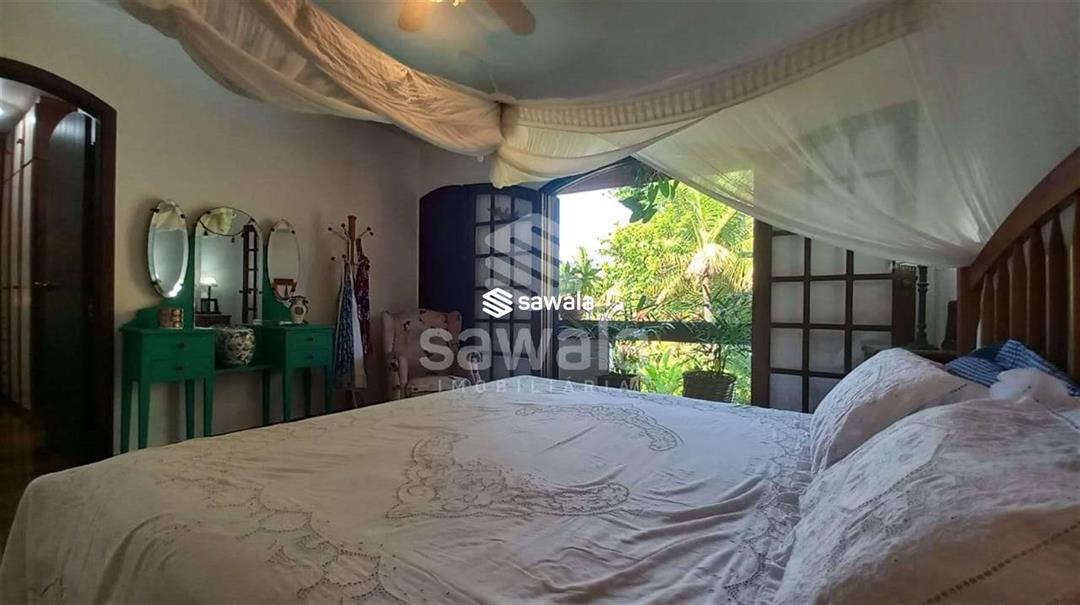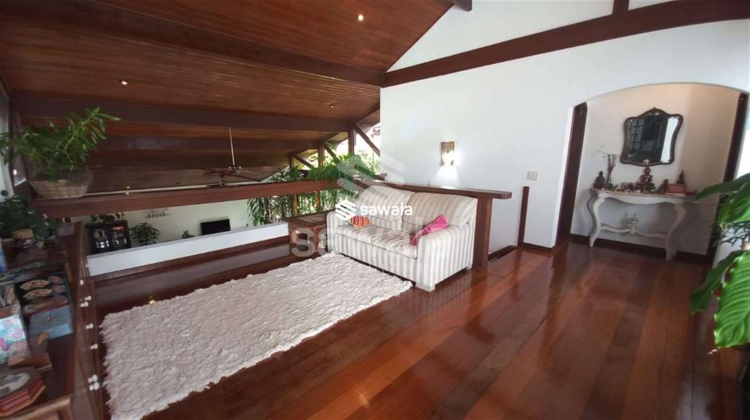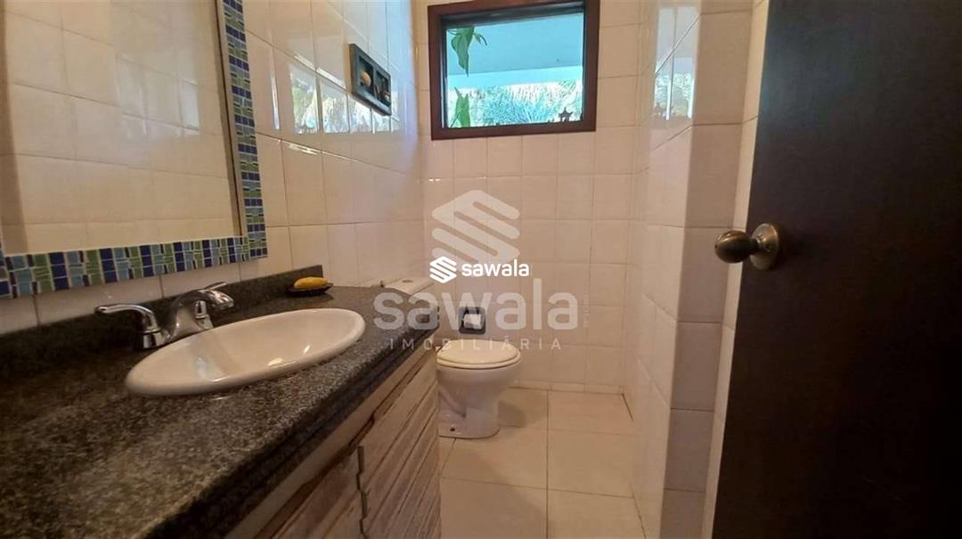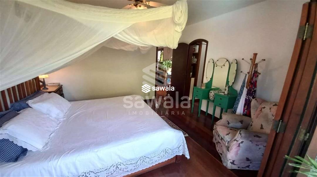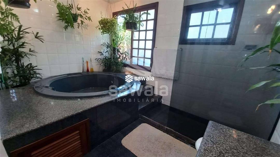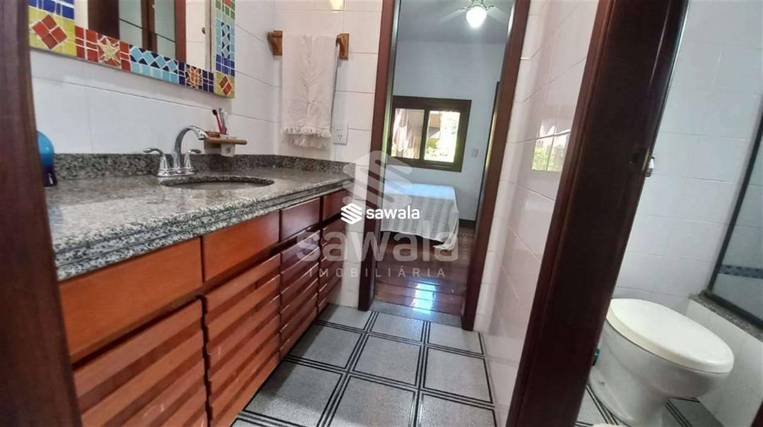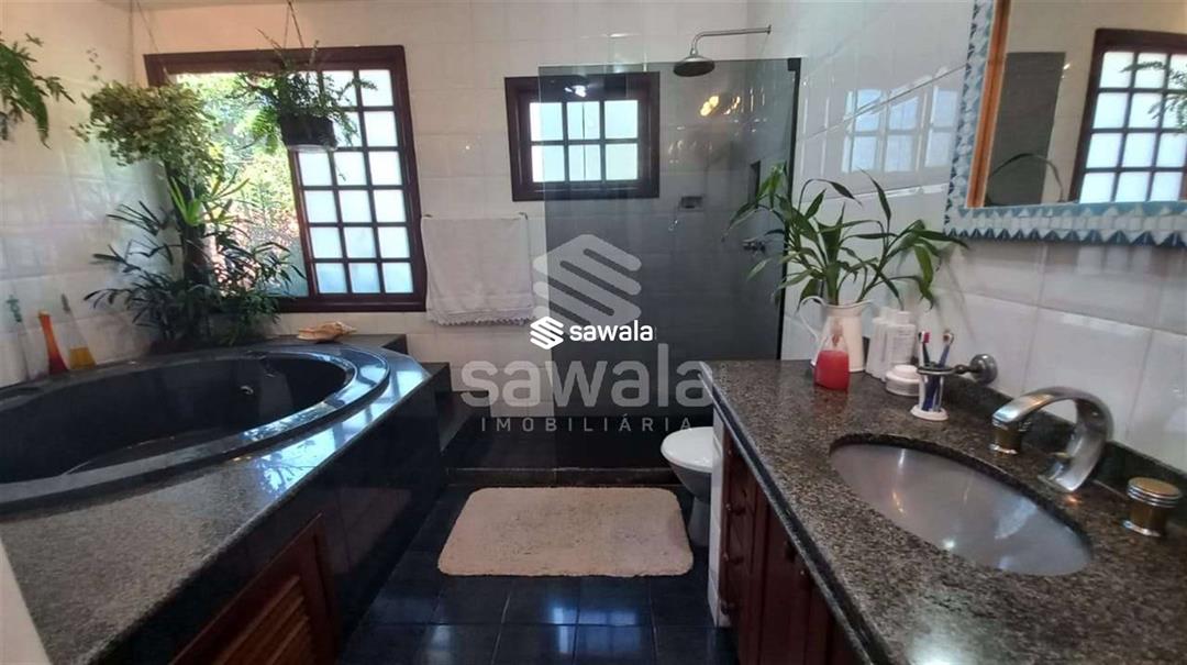 banheiro social .Jardim de inverno .área de serviço e uma suíte .Dependência completa .Garagem para 4 carros2º Pavto 1 suíte master com varanda e closet ,hidromassagem,saleta íntima,2 suites com varanda .A casa tem aquecimeno solar de água ,bomba de pressurização de água .água filtrada nas torneiras de banheiros .Condomino frente mar .Vista verde da montanha
