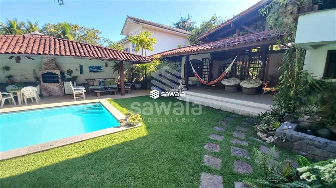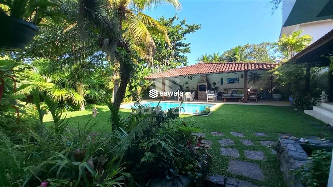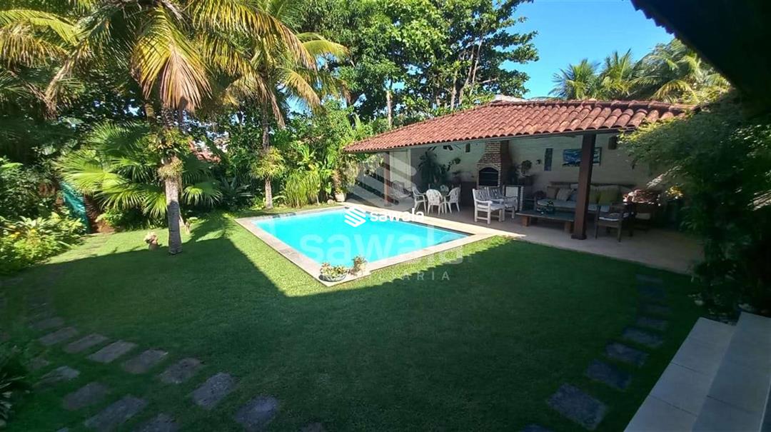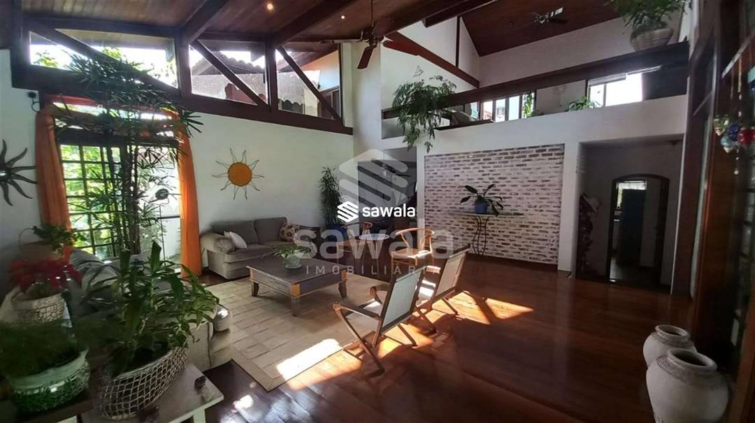 CONDOMINIO MARAMAR .Casa duplex .Pé direito elevado .1º Pavto .Varanda gourmet ,piscina ampla , terreno com muito verde , paisagismo impecável com árvores frutíferas e plantas exóticas .Copa cozinha planejada
