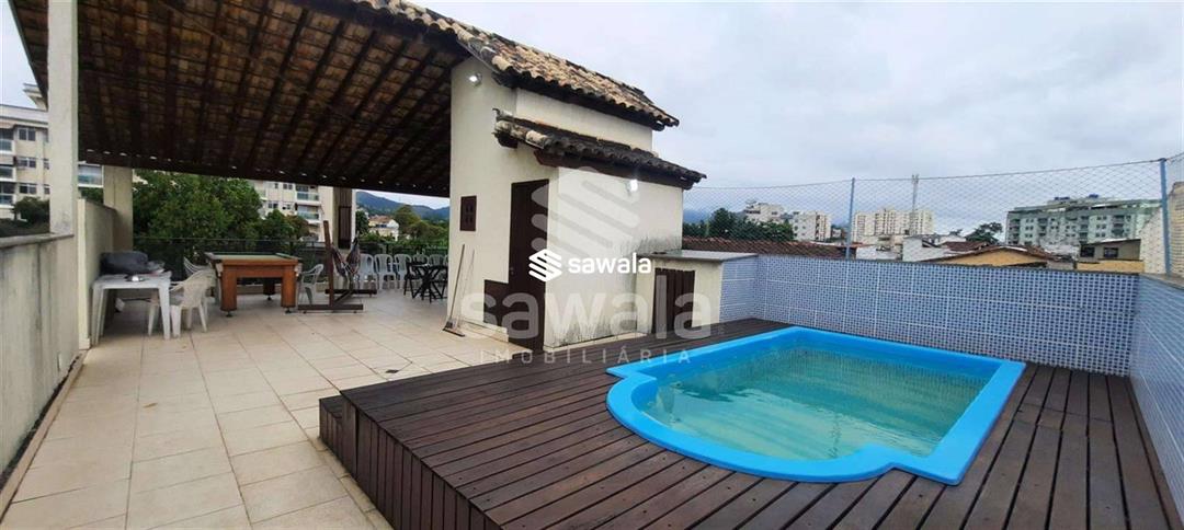 No terraço uma piscina aconchegante acompanhada por uma sauna seca e um salão gourmet com rede e mesa de sinuca