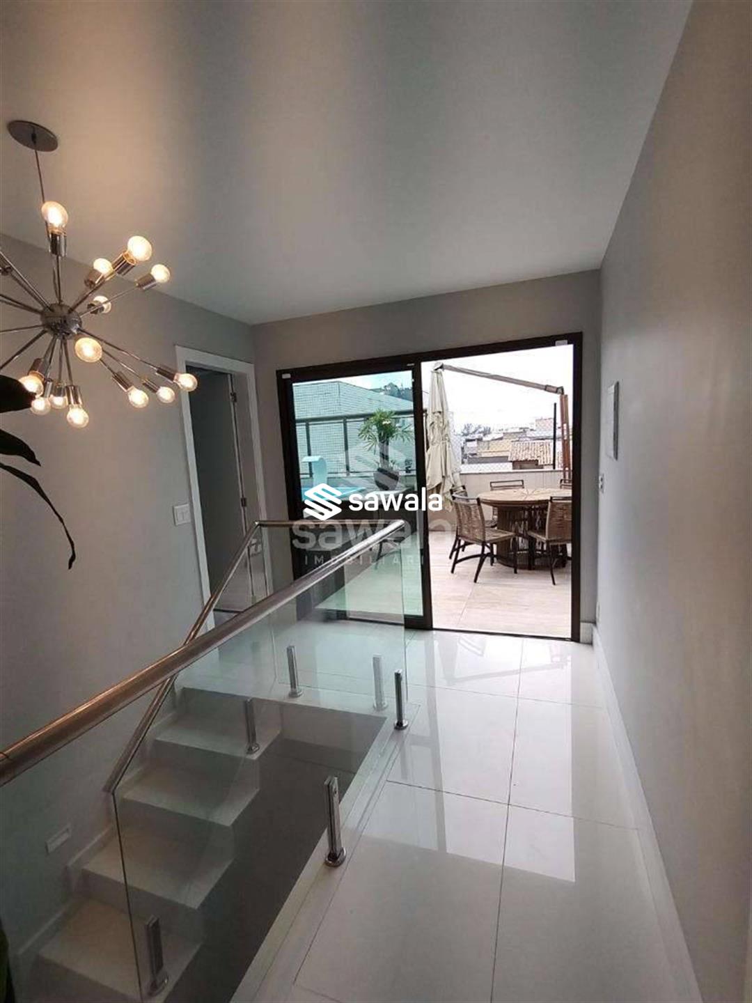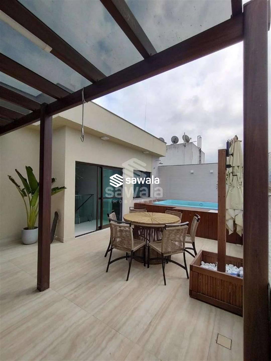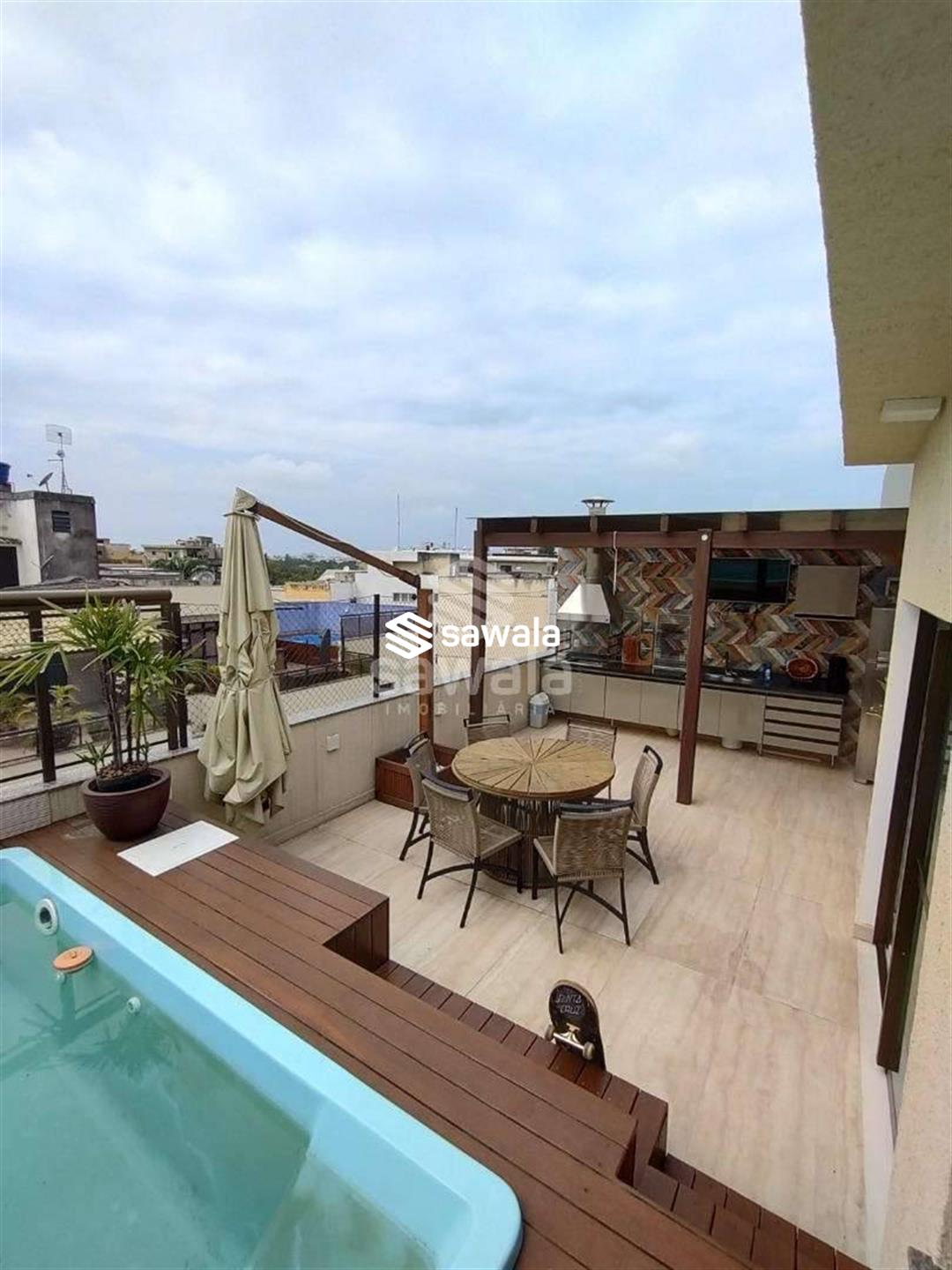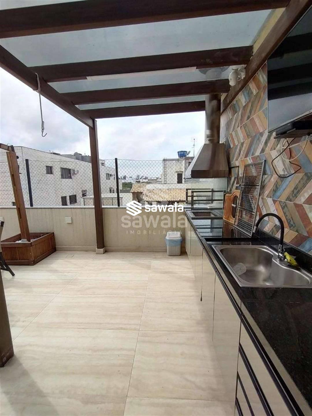 Cobertura duplex a poucos metros da praia, próxima ao comércio.Primeiro pavimento composto de ampla sala com dois ambientes, cozinha, área de serviço separada da cozinha por uma porta blindex ,varanda, banheiro social um quarto e uma suíte, âmbos com ármarios planejados.Segundo pavimento composto de 2 quartos e um banheiro social, área externa com piscina, churrasqueira e área gourmet com bancada , pia e ármarios