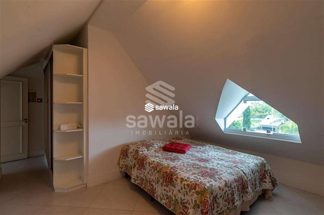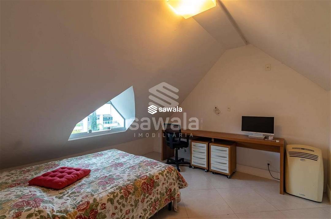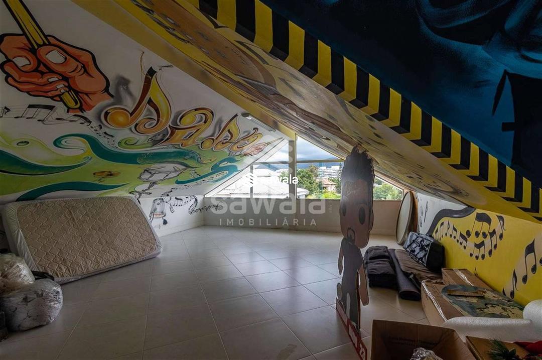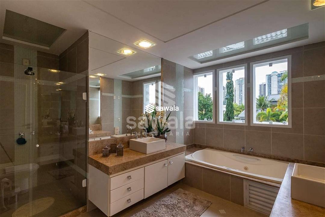 A suíte master é um capítulo à parte, com sala íntima, walking closet, banheiro com spa e um dormitório generoso, todos climatizados e bem iluminados. No terceiro andar, um sótão ventilado e uma suíte de hóspedes completa oferecem privacidade e conforto aos visitantes. A área de lazer é um convite à diversão e ao relaxamento, com espaço gourmet equipado, piscina com cascata, deck integrado à sauna e banheiro de apoio