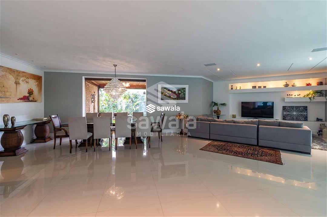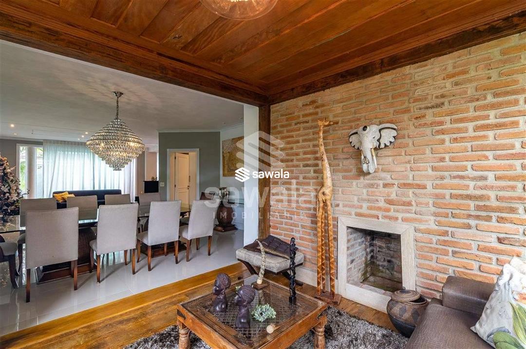 Com impressionantes 1000m² de área total e 987m² de área útil, esta residência é perfeita para famílias que valorizam espaço, privacidade e sofisticação. No primeiro andar, uma sala ampla e integrada convida a momentos inesquecíveis, complementada por um lavabo e um charmoso anexo em madeira de demolição
