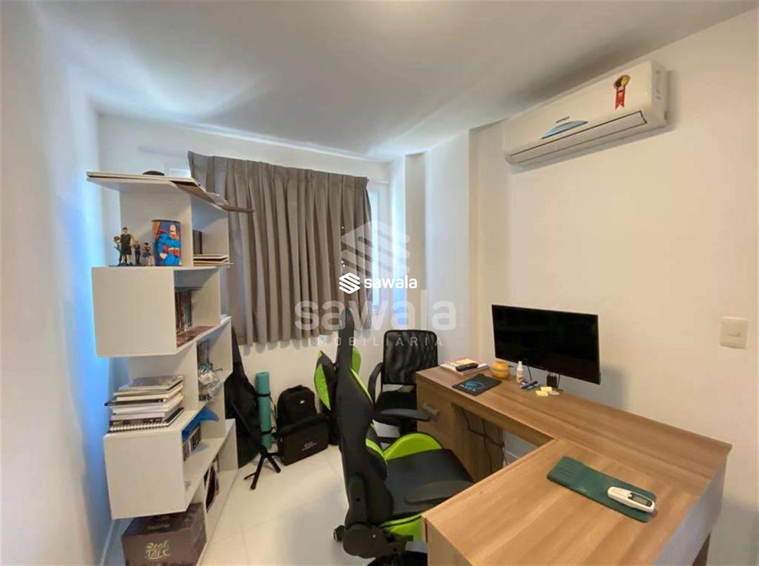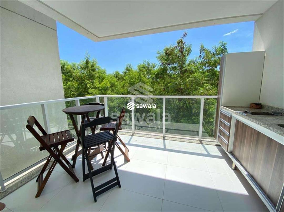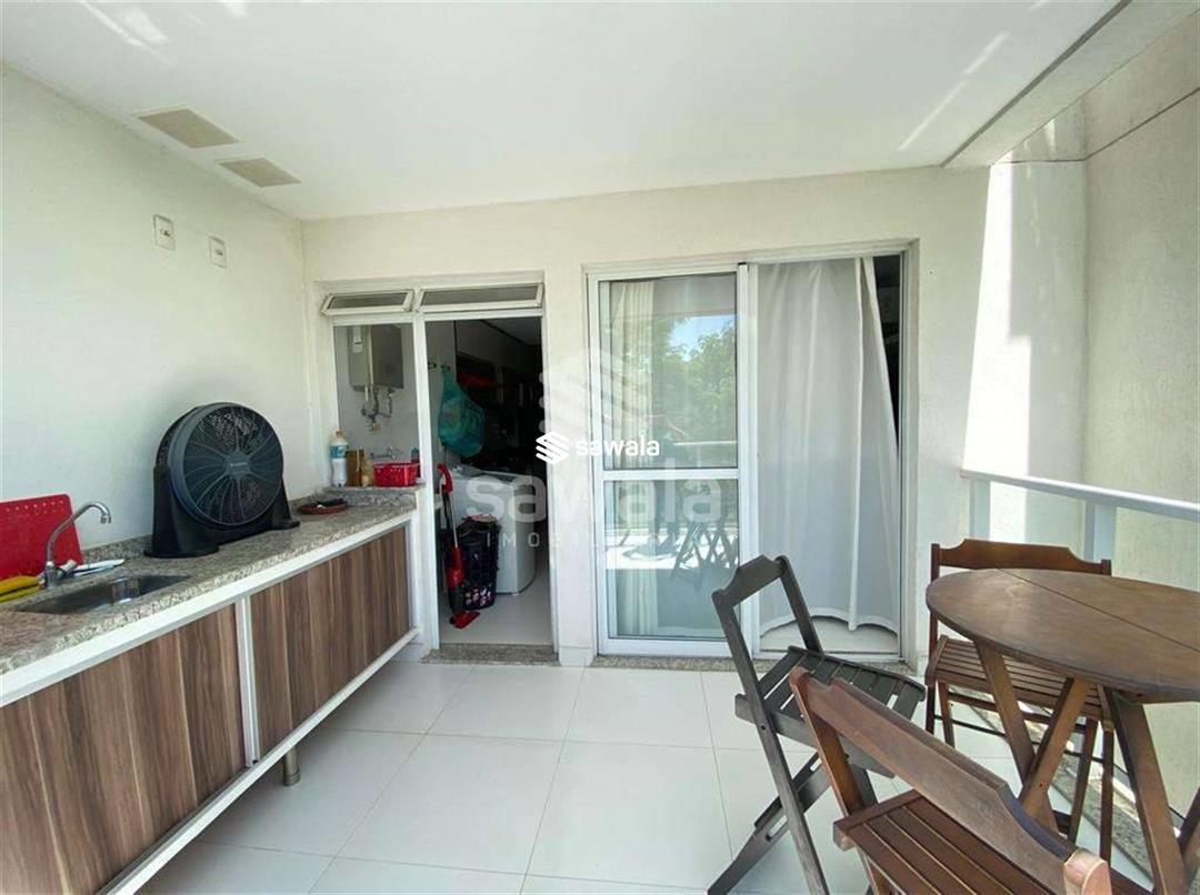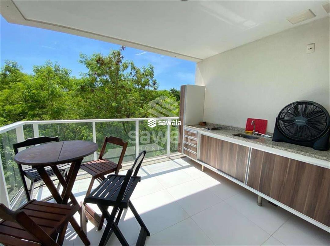 Apartamento com sala em dois ambientes com painel para tv e rack planejados, com varanda gourmet com bancada, vista para o verde, dois quartos sendo uma suíte com armarios planejados, banheiros com armarios e blindex, cozinha tipo americana, com armarios planejados e fogão embutido, área de serviço com acesso pra varanda.Ar condicionado split na sala e nos quartos, uma vaga de garagem.Condominio com infraestrutura completa de lazer: Piscinas adulto e infantil, piscina aquecida, sauna integrada a piscina, churrasqueiras, salão de festas, espaço gourmet, brinquedoteca, sala de jogos, quadra poliesportiva, play ground, academia administrada pela Rio Sport Center.