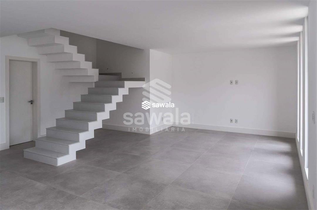 1° Pavimento: sala, piso porcelanato, aberta e integrada com cozinha, lavabo, área de serviço e dependência completa.2° Pavimento: 3 suítes todas com closets sendo a master com acesso a varanda e sala de banho com hidromassagem.3° Pavimento: Suíte master com duplo closet, salão de banho e acesso ao terraço