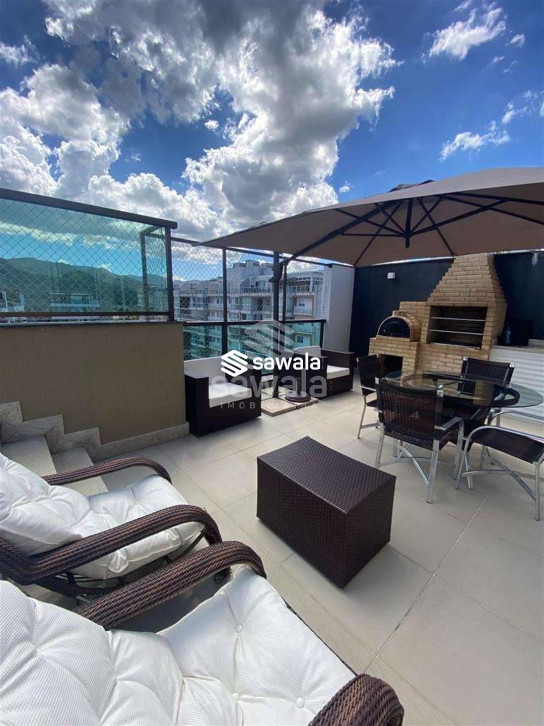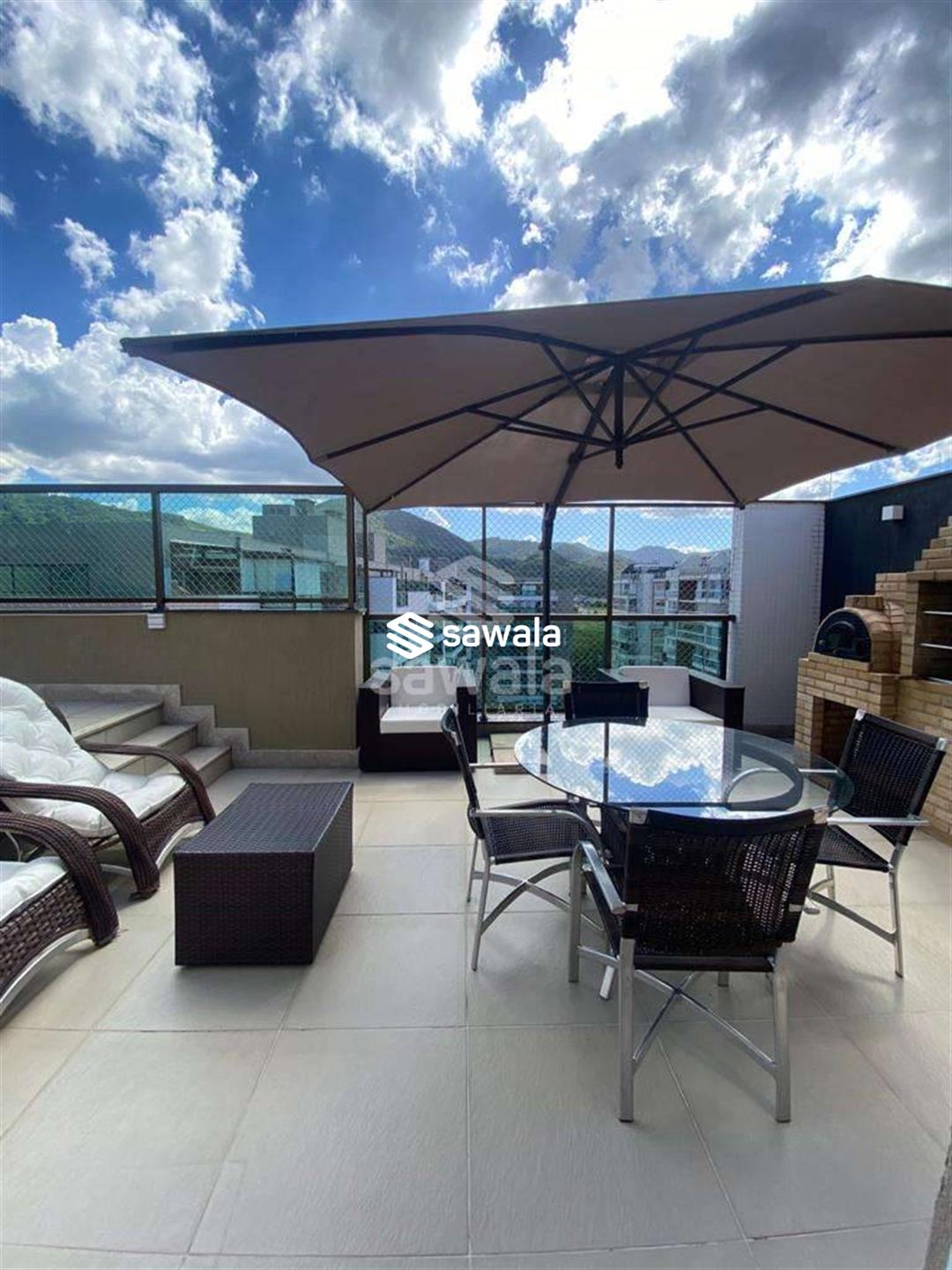 Terraço bem amplo com pergolado, piscina em alvenaria, chuveiro, churrasqueira, forno de pizza e bancada de granito com pia e armário. Piso da cobertura em porcelanato polido e áreas de varanda e terraço porcelanato antiderrapante. A cobertura fica no melhor condomínio do Pontal Oceânico, com vasta área de lazer, incluindo quadra de tênis, academia, 4 churrasqueiras, 4 salões de festas, brinquedoteca, carregador para carro elétrico, car wash, pranchário, salão de beleza e muito mais, além de transporte exclusivo para praia, shooping e metrô da Barra. Portaria e Segrança 24h. Agende sua visita e surpreenda-se!