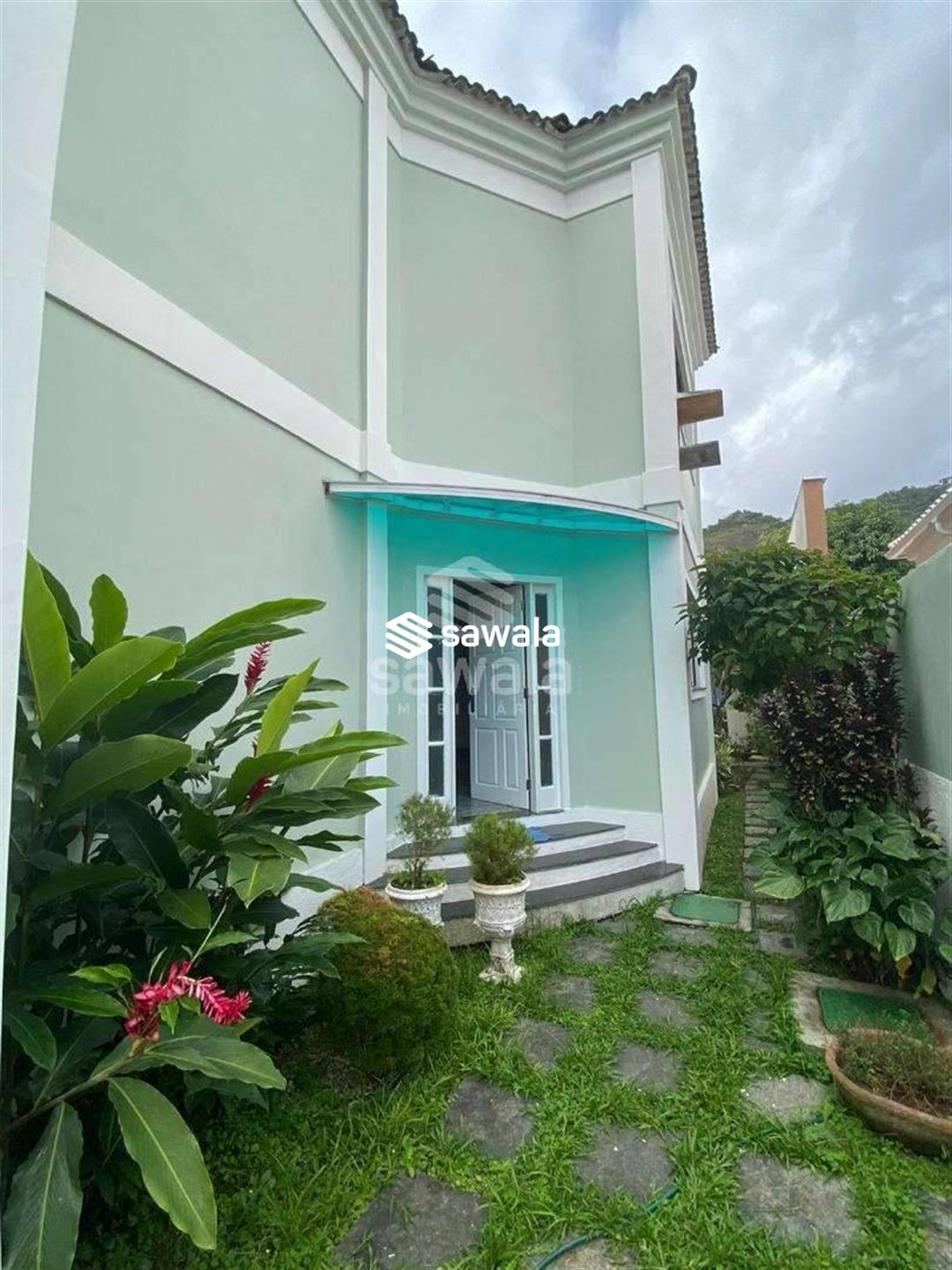 Excelente Casa com integração a naturezaPrimeiro pavimento composto por um lindo jardim, vaga para 2 carros, piscina com cascata, churrasqueira, chuveirão, arvores frutíferas, sala em 2 ambientes, espaço cinema,1 banheiro, 1 lavabo, jardim de inverno, 1 quarto, área de serviço, cozinha ampla.Segundo pavimento composto por 1 suíte máster com hidromassagem e closet, 2 quartos sendo suíte canadense, 1 quarto, 1 banheiro, hall de entrada.Casa para você que gostar de está em contato com a natureza.Além de contar com uma excelente infraestrutura, você tem um restaurante próprio do condomínio e segurança 24 horas.Vem morar no condomínio mais desejado de Jacarepaguá.Agende sua visita.