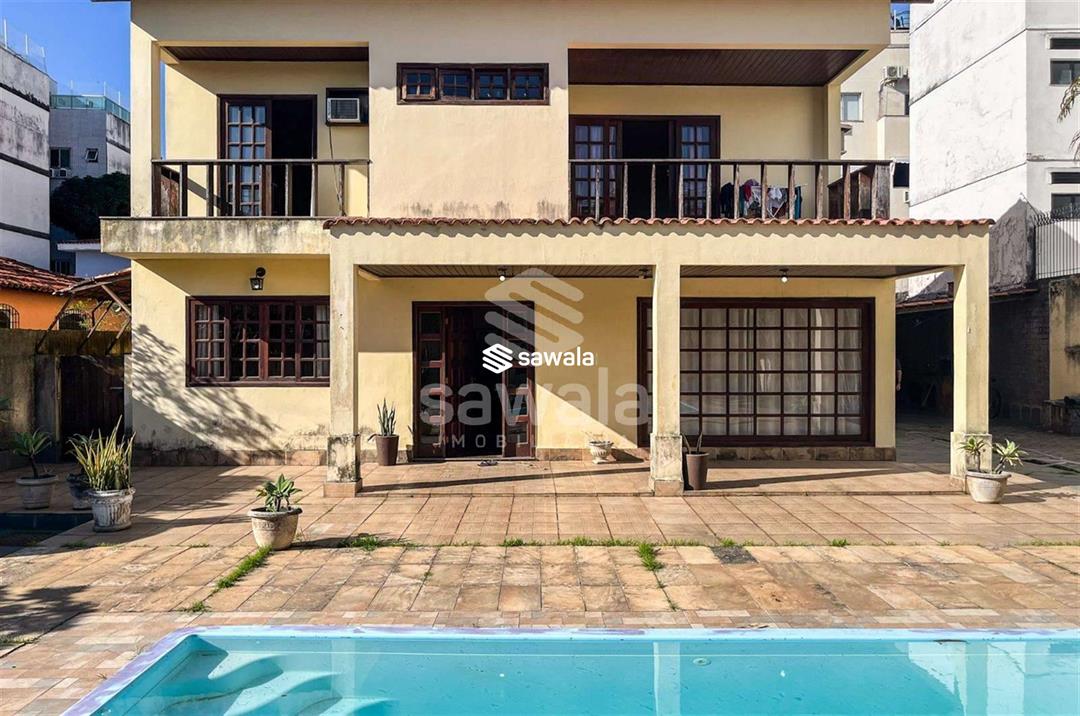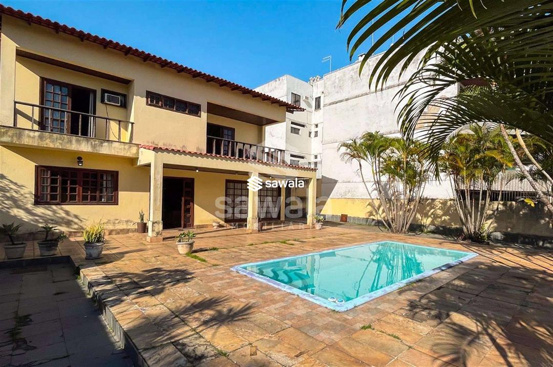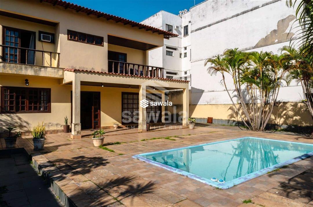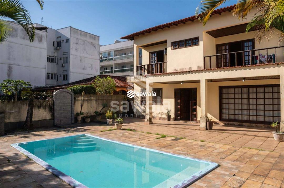 Casa Duplex com 5 quartos, sendo 2 suítes todas com box Blindex, Uma suíte Canadense excelente planta, 501 m2 de área útil, casa em centro de terreno bem distribuída tudo muito amplo, sala possui amplo espaço e fechado com pintura externa em bom estado, sendo 2 suítes, uma canadense todas com box Blindex, excelente planta, 625 m2 de area total, tudo muito amplo, sala possui amplo esapço, cozinha e área de serviço muito amplas, 5 vagas de carros, para limpeza de calçadas, garagem e outras áreas externas e regar plantas, o restante com água da Cedae (cisterna e caixa com ótima capacidade, vizinhos tranquilos, espaço gourmet com churrasqueira