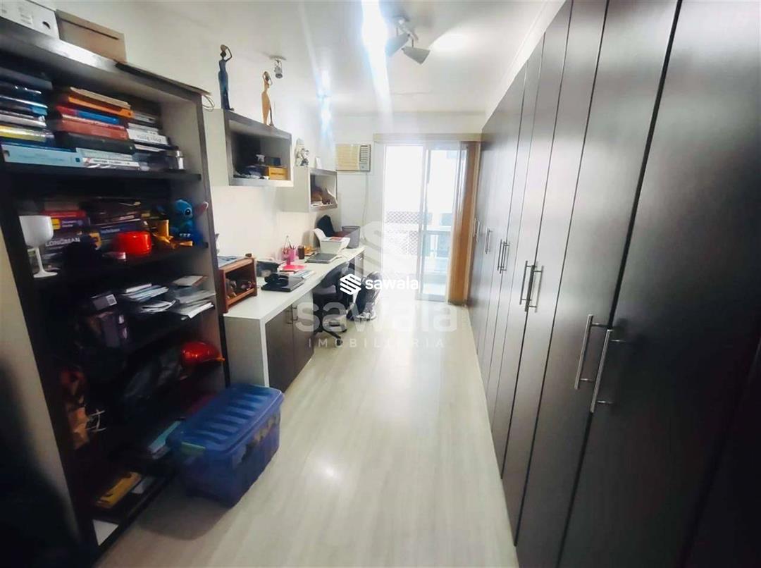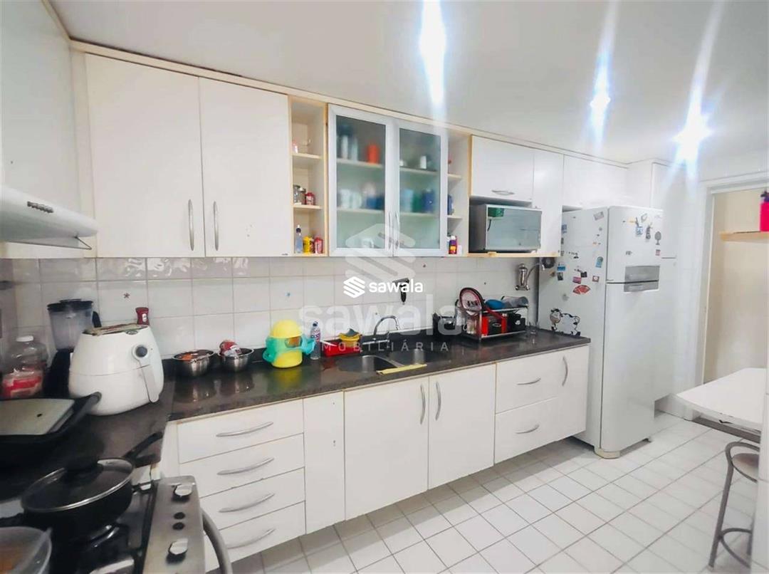 Excelente apartamento lâmina com 4 quartos, sendo 2 suítes, dependência completa de empregada, sala ampla em 2 ambientes com acesso para varanda com vista indevassável, para rua calma e arborizada.Duas entradas independentes, sendo uma social e uma de serviço com acesso para a cozinha, a mesma repleta de armários e uma lavanderia