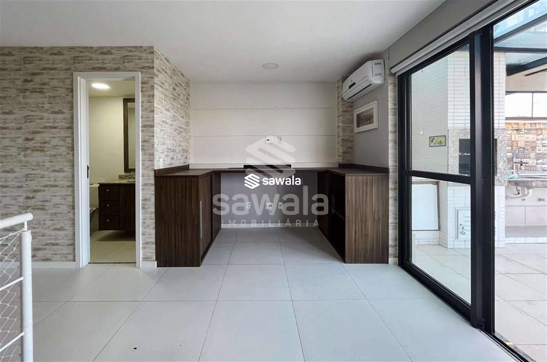 Cobertura duplex composta de 4 suítes,1° Andar: Sala com ar condicionado e integrada a varanda, cozinha com armários planejados, varanda com fechamento de vidro e 3 suites todas com armários planejados, sendo 2 canadenses.2° andar com uma sala social com lavabo e uma ampla suite com armarios planejados e ar condicionado