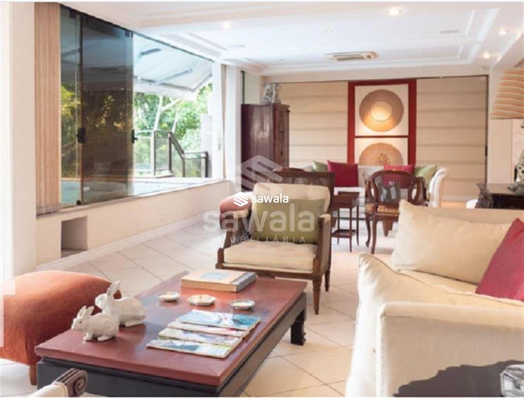 Bay Windon Living, Suíte com Armários, Jardim de Inverno, Home Teather, Adega para cerca 230 garrafas, com Bar de Apoio e monta carga, Sala de Jogos, Dependência de Empregados com sala de estar, dois quartos, banheiro, lavanderia, área de serviço com vista para a Pedra da Gávea e do Joá