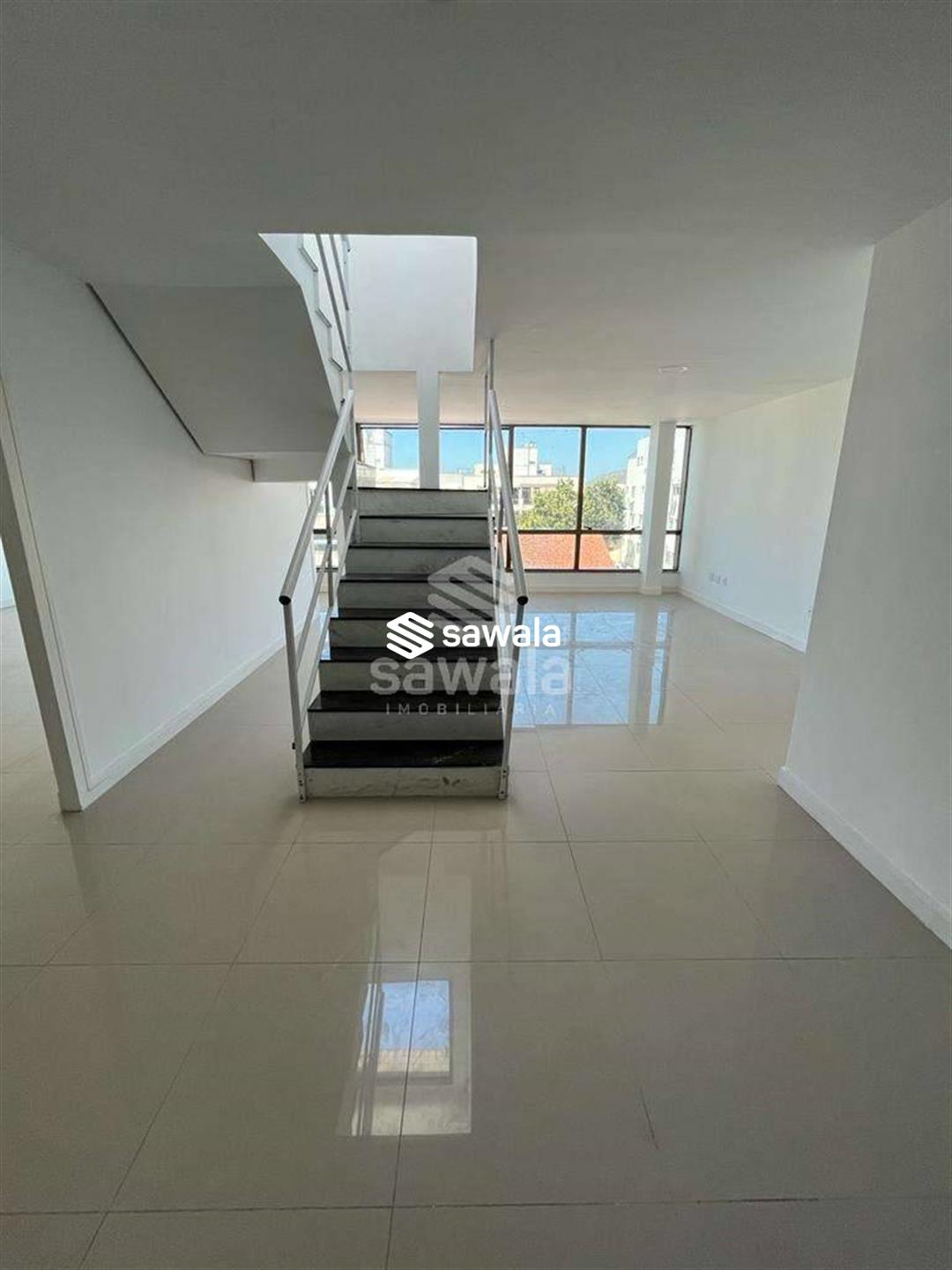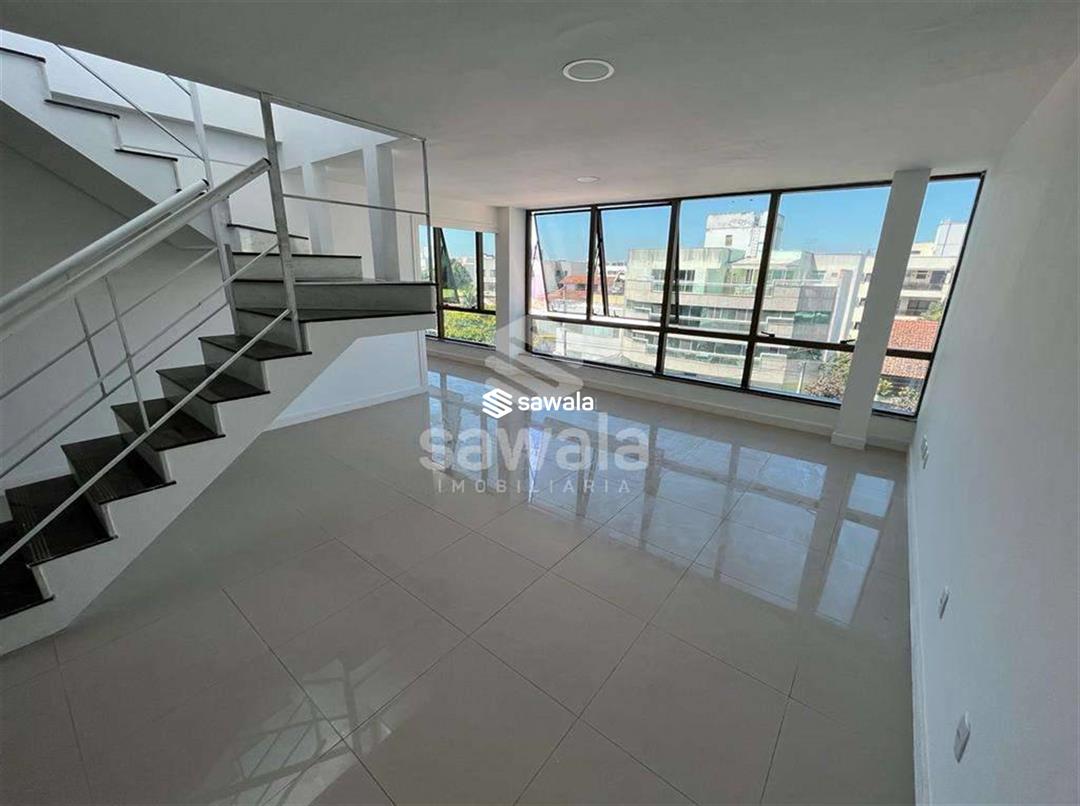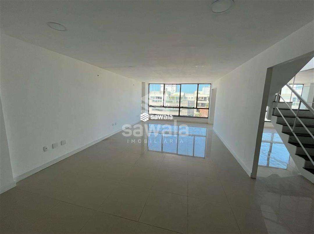 Cobertura duplex comercial - 180 m² - reformada - sol da manhã - vista livre - clara e arejada - localização privilegiada - Av das Américas1º pavimento: hall de entrada, piso porcelanato, 2 salas, lavabo decorado, banheiro social. Escada de acesso piso granito.2º pavimento: varanda, 2 salas amplas, 1 escritório, lavabo decorado, vestiário com 4 duchas e 2 cubas, piso porcelanato.Elevadores com acesso aos 2 pavimentos. 2 vagas cobertas e Box no subsolo, Hidrômetro individual. Próximo: Supermercados, Empórios, Estação BRT, Cartório, Escolas