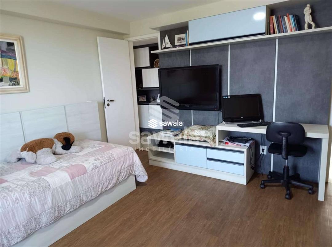 O apartamento ainda conta com um lavabo, armários no corredor e uma cozinha espaçosa e arejada equipada com móveis planejados de alta qualidade