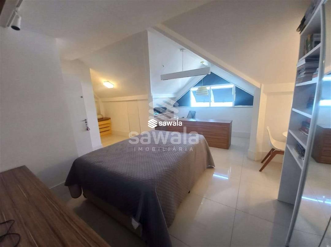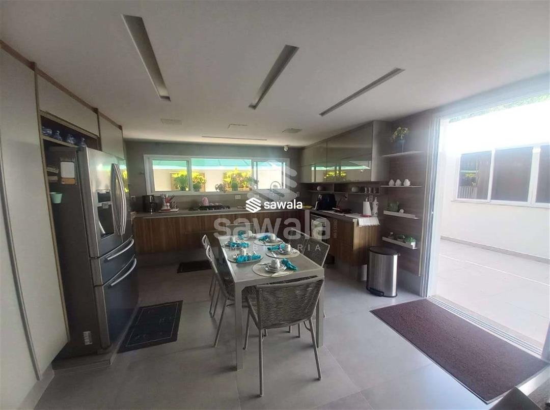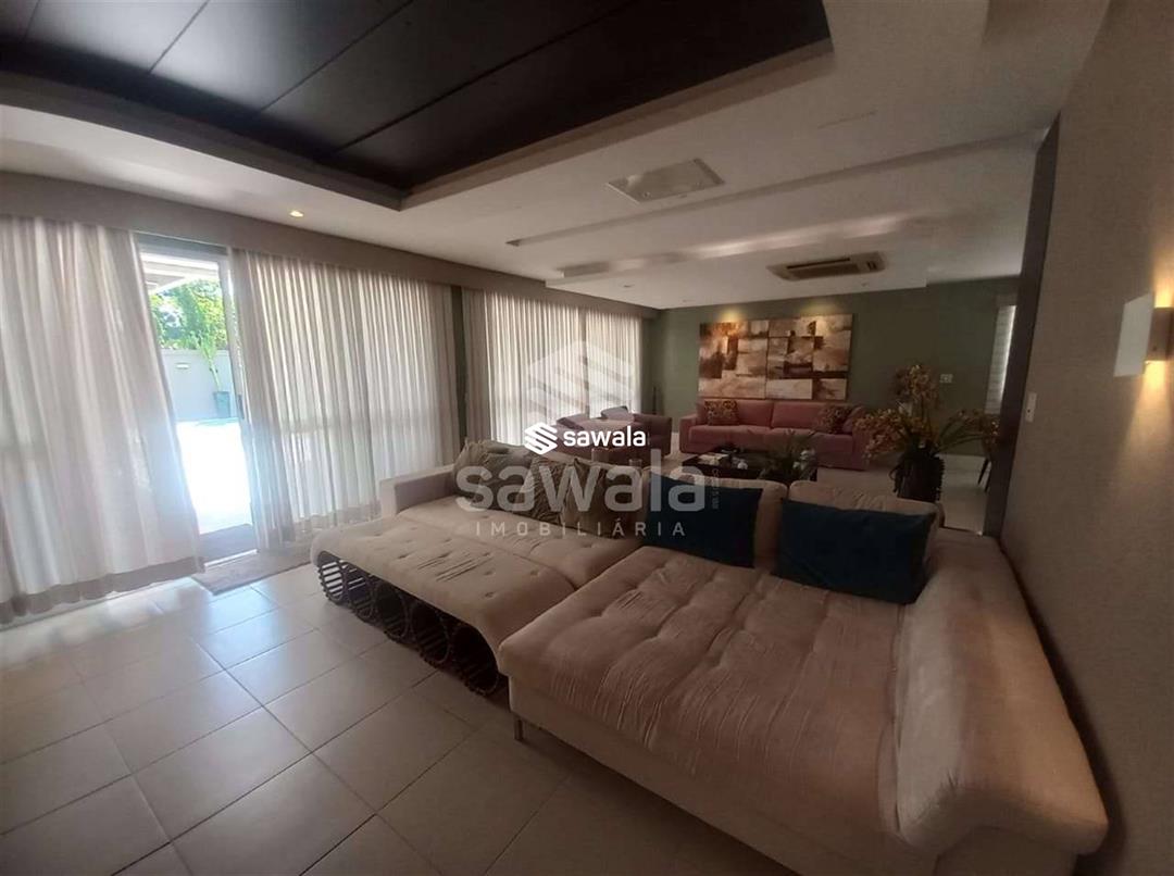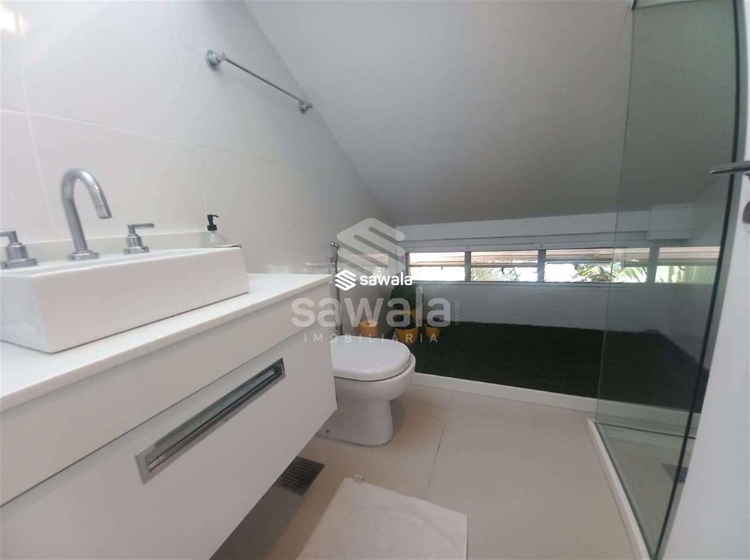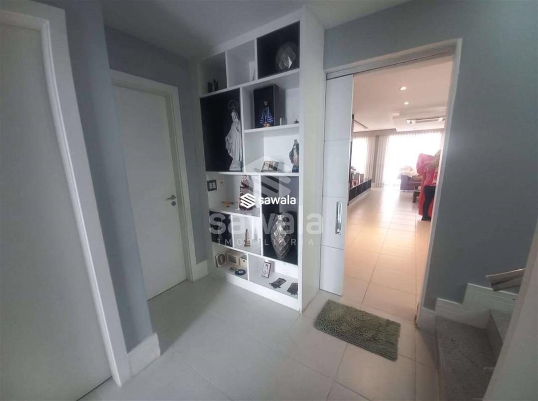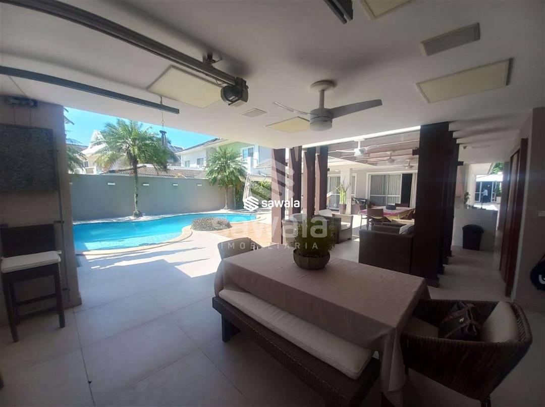 CASA TRIPLEX CONDOMINIO BLUE HOUSE 429 m² 5 SUÍTES1 PVTO : Um espetacular salão com 3 ambientes ,projeto de iluminação ,ar condicionado K7,sala intima com um telão e projetor .Lavabo .Suíte espaçosa ,Copa cozinha clara e arejada com armários planejados.,lavanderia ,dependência completa .2 PVTO: 4 suítes com armários e splits sendo que a suíte master com closet e banheira de hdromassagem .3 PVTO : Sótão podendo confortávelmente criar mais um quarto .Split