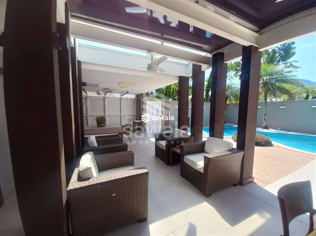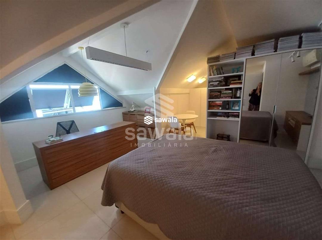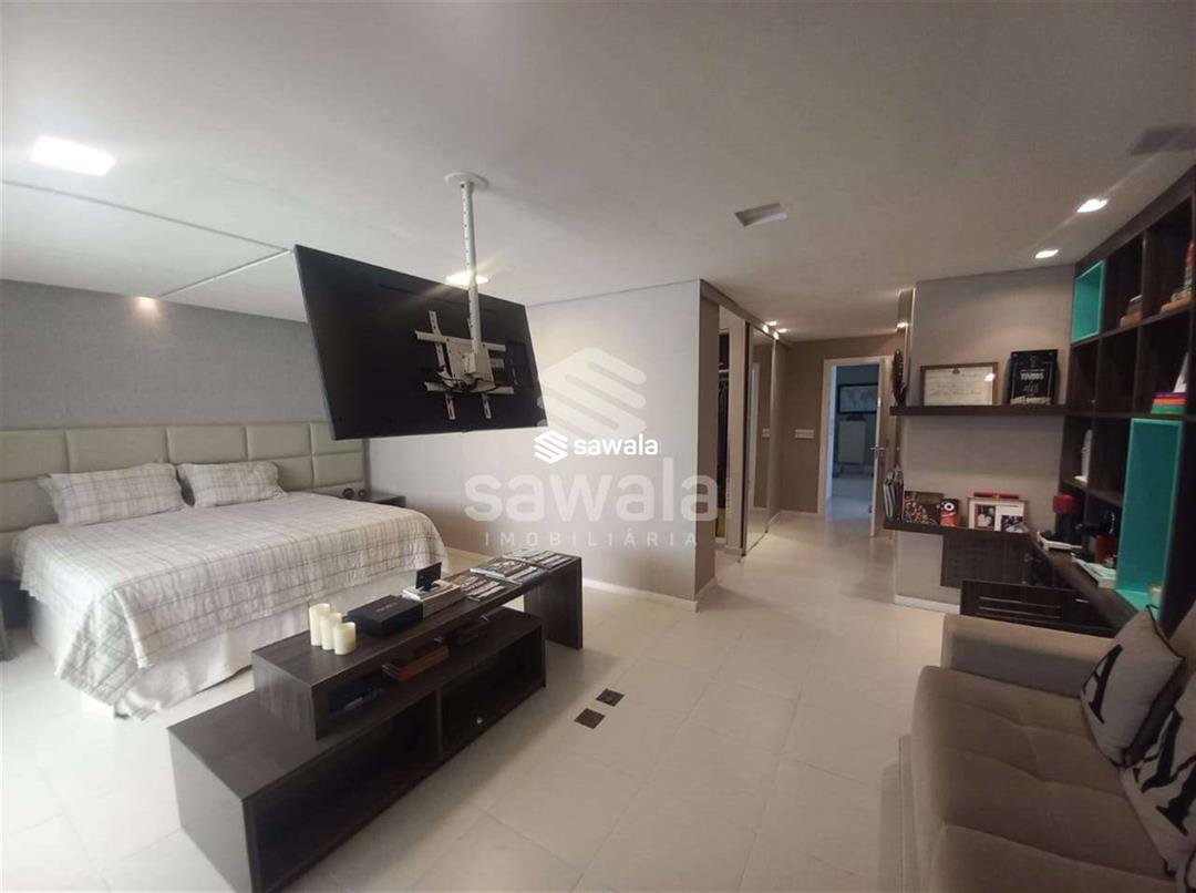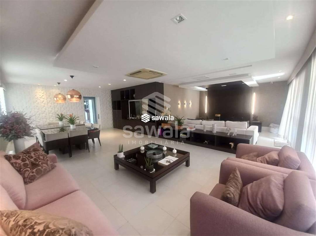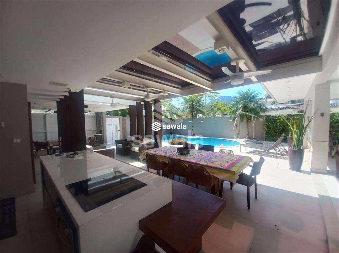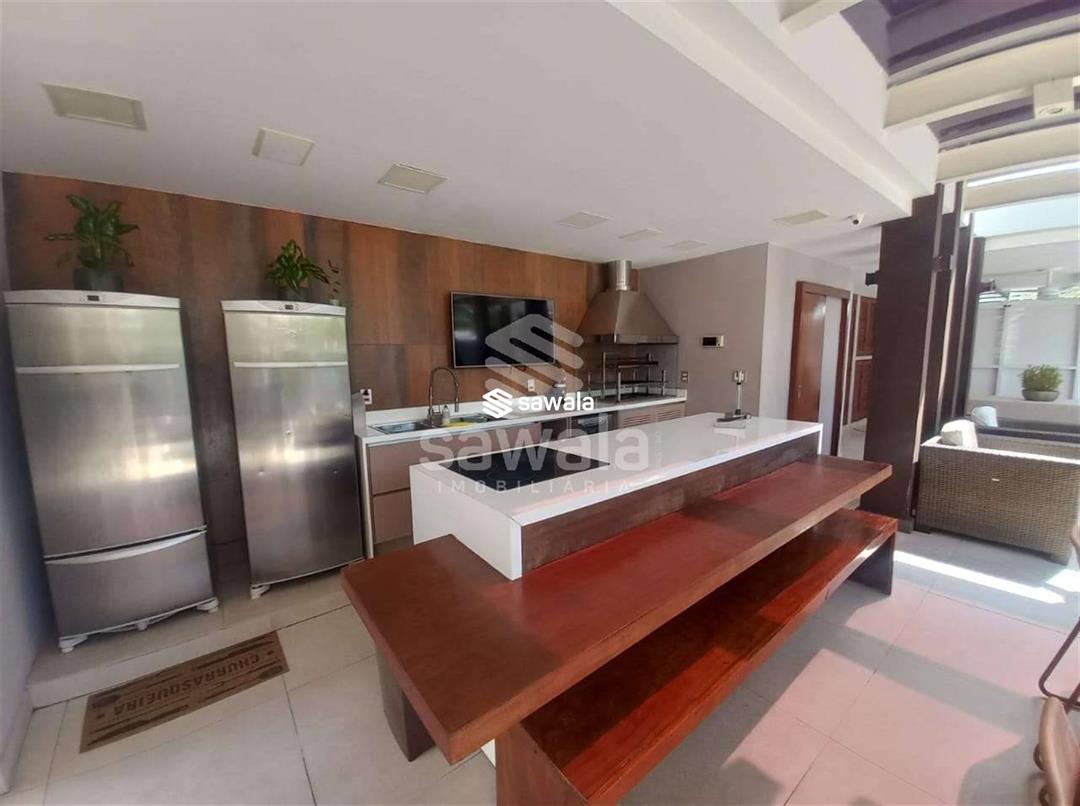 CASA TRIPLEX CONDOMINIO BLUE HOUSE 429 m² 5 SUÍTES1 PVTO : Um espetacular salão com 3 ambientes ,projeto de iluminação ,ar condicionado K7,sala intima com um telão e projetor .Lavabo .Suíte espaçosa ,Copa cozinha clara e arejada com armários planejados.,lavanderia ,dependência completa .2 PVTO: 4 suítes com armários e splits sendo que a suíte master com closet e banheira de hdromassagem .3 PVTO : Sótão podendo confortávelmente criar mais um quarto .Split