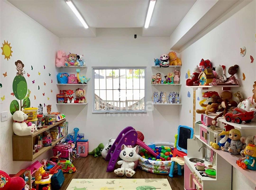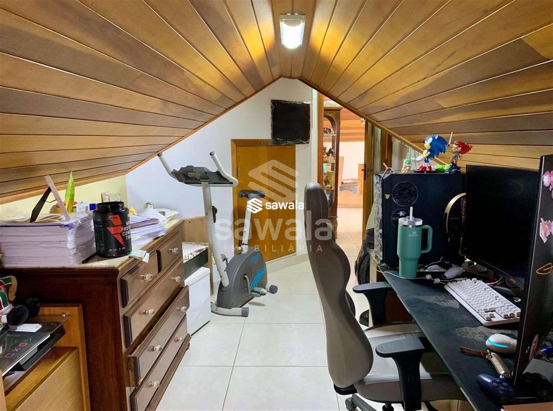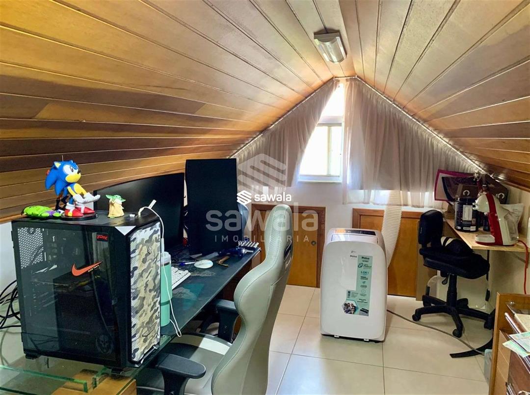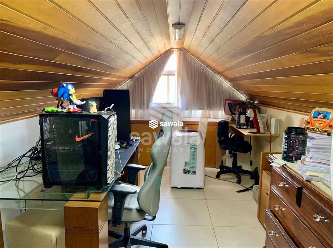 Imóvel sendo distribuído da seguinte forma:1° Pavimento - Sala de estar em 2 ambientes, 1 lavabo, cozinha repleta de armários, brinquedoteca, 1 suíte, pequena sala privativa com cozinha dedicada, área de serviço coberta, e banheiro de serviço. 2° Pavimento - Temos acesso à 3 amplas suítes com A/C Splite e armários planejados, 2 delas com closet e uma varanda privativa.3° Pavimento - Amplo sotão em 2 ambientes, cozinha de apoio, e banheiro social