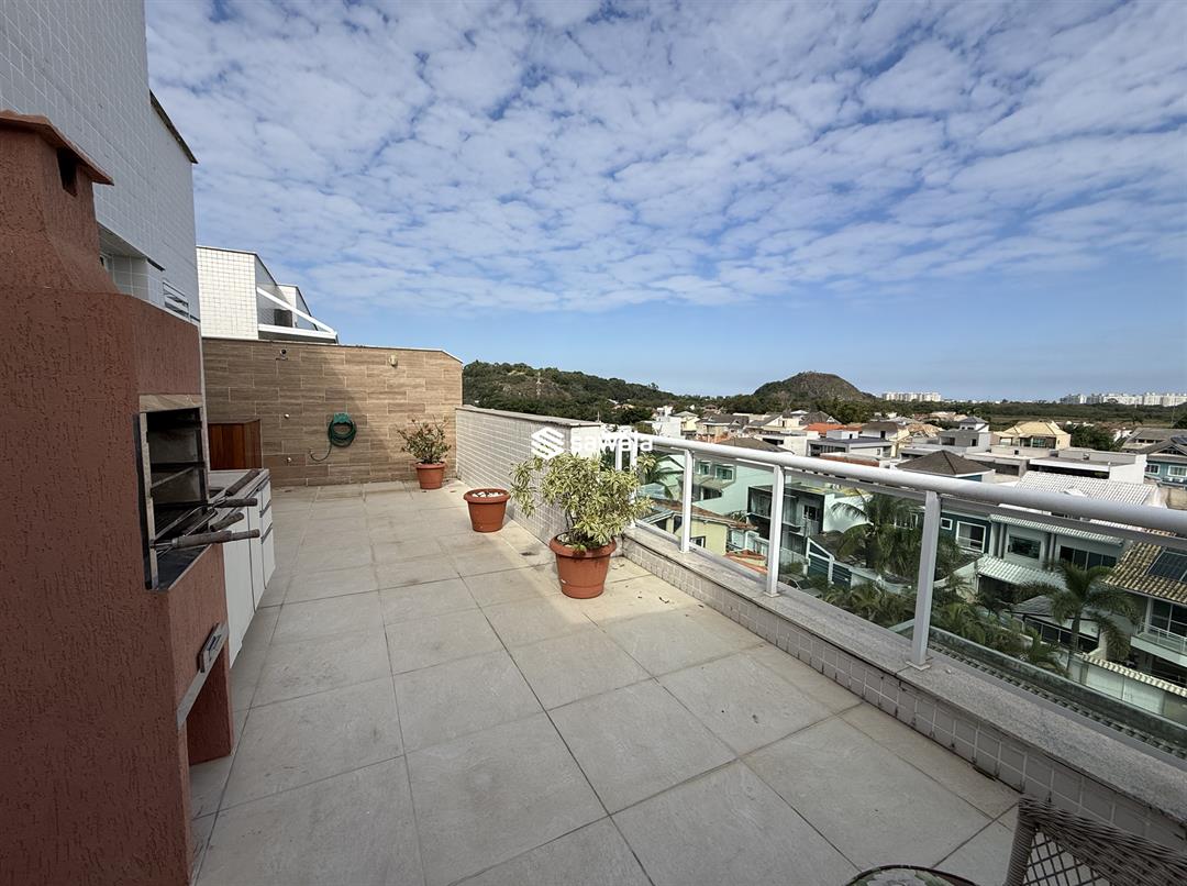 Àrea externa: espaço gourmet com piscina, chuveirão, churrasqueira, bancada com armários e pia. O elevador do condomínio dá acesso aos 2 andares da cobertura, facilitando assim caso queira receber seus convidados diretamente ná sua área de lazer. Condominio com segurança 24 hrs e infraestrutura completa lazer: piscina adulto e infantil, piscina com raia, academia, sala de ginástica multiuso, salão de festa infantil, salão de festa adulto, 2 churrasqueiras coletivas, espaço de convivencia, salão de beleza, coworking, cinema, salão de jogos, mercado 24 hrs, sauna, brinquedoteca e playkids. Possui gestão desportiva FD / Team Nogueira com personal, aulas de ginástica localizada, funcional, jiu-jitsu, dança kids e zumba. Ótima localização com farto comércio e serviços, ao lado do Colégio Tamandaré, Supermercado Adonai, próximo ao Américas Shopping, a 10 minutos da Praia do Recreio e próximo ao pólo gastronomico das Vargens. Documentação ok, aceita financiamento bancário. Utilize seu FGTS. Marque sua visita.