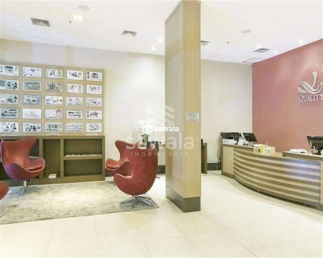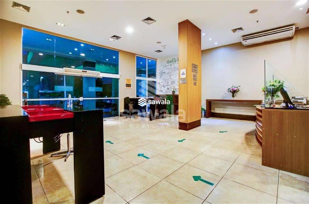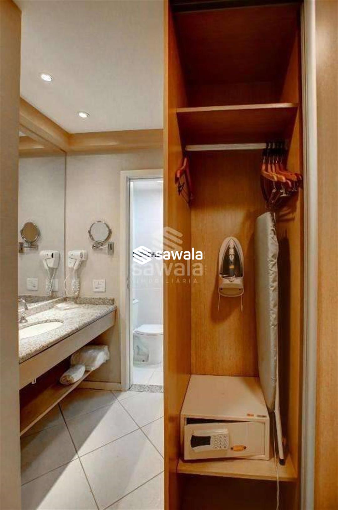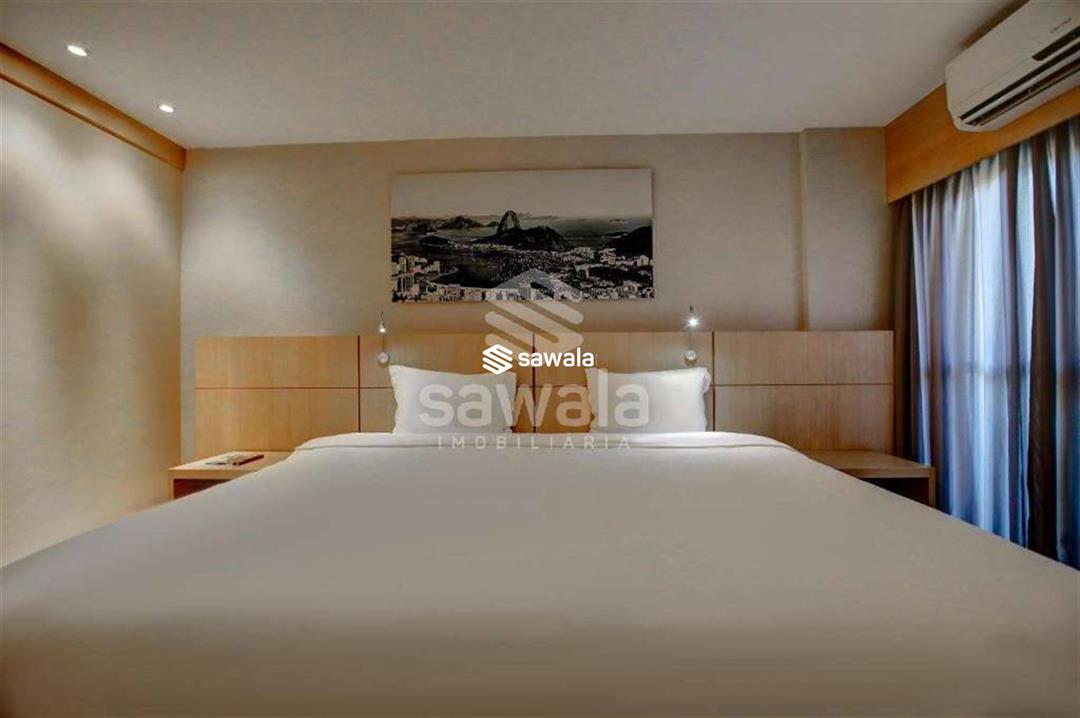 Banheiro da suíte com bancada em granito, secador de cabelo, espelho e blindex. Hotel com serviços pay per use como lavanderia, higienização de apartamento.Condomínio com piscina, restaurante, sala de reuniões, recepção e segurança 24h.Internet e TV a cabo inclusos no valor de condomínio.1 vaga de garagem.