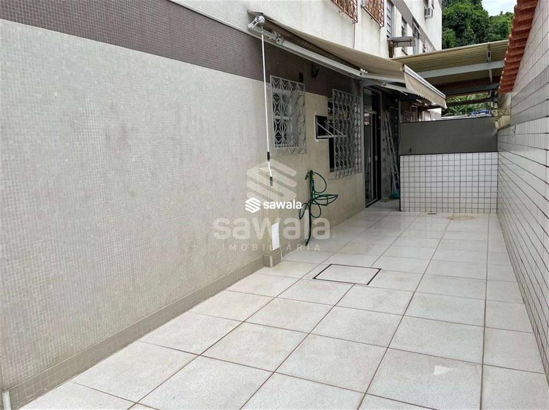 Apartamento térreo - Vazio - Tanque - Rio de Janeiro Sala em dois ambientes integrada a área livre, piso cerâmica em todos os cômodos, dois quartos com armários planejados, banheiro social ,cozinha com armários e acesso para a área livre, lavanderia, área de serviço e dependência completa revertida em escritório.Àrea livre em L, piso cerâmica 50m²Condomínio com salão de festas e churrasqueira.Garagem coberta para 1 carro.