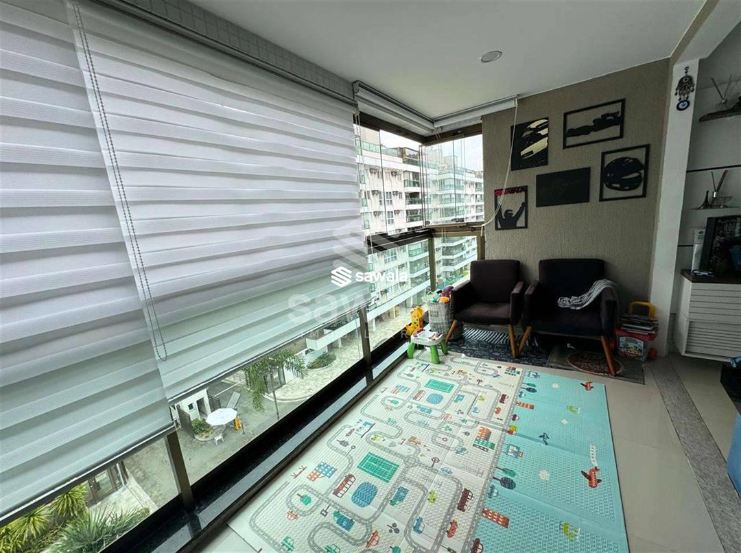 Condominio Maui - Pontal OceânicoApartamento: Varanda com cortina de vidro e bancada gourmet com churrasqueira elétrica, sala em 2 ambientes, integrada com a varanda, 2 quartos sendo 1 suíte, banheiro social e da suite com armários planejados e box bindex, cozinha e área de serviço integradas com a varanda.1 vaga de garagem.Condominio com infraestrutura completa de lazer.Ônibus até o metrô da Barra da Tijuca.Comércio local, próximo às melhores praias da região, shoppings, colégios, transportes públicos e Estação BRT