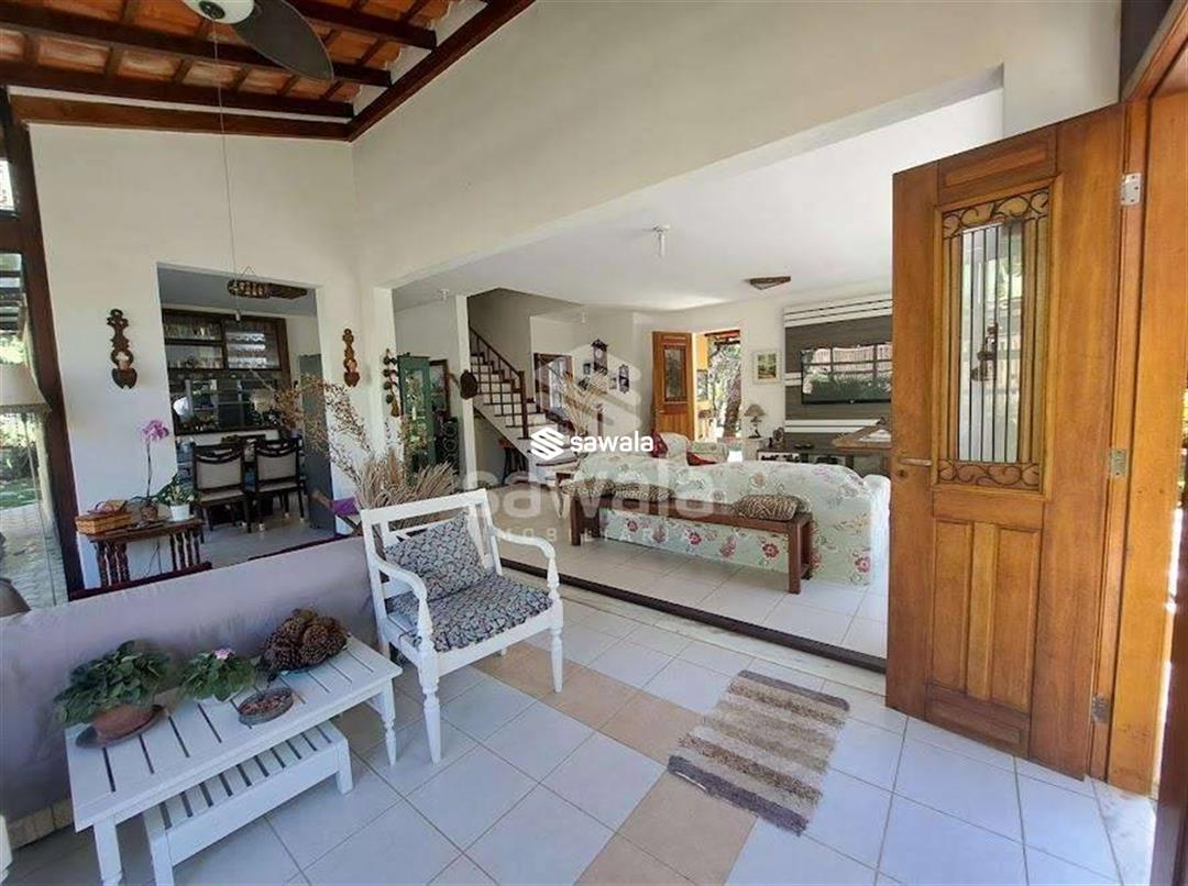Casa Triplex Colonial - Vargem Grande - 300m² área construída - terreno 674 m²1º pavimento: sala em 2 ambientes, lavabo, piso cerâmica,cozinha com ilha e passa prato, sala de jantar, separada, suíte térrea com armários, área de serviço e dependência completa.2º pavimento: 3 suítes: 1ª suíte com closet, 2ª suíte, 3ª suíte - hidromassagem, bancada com cuba dupla, closet e varanda( todos com vista para a montanha e ármarios planejados) roupeiro no hall, piso tábuas corrida.3º pavimento: sala íntima, maleiro, espaço fitness com vista para a montanha , lareira com piso tábuas corridaÁrea externa: canil, horta, varanda com redário, piscina, riacho e árvores frutíferas.3 vagasCondomínio possui vaga de visitante, quadra poliesportiva, playground,mini mercadoPortaria 24 horas.Próximo a Estrada do Pontal, praias, supermercados, transporte público.