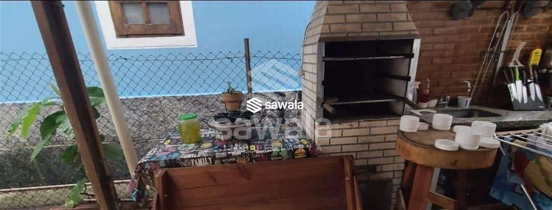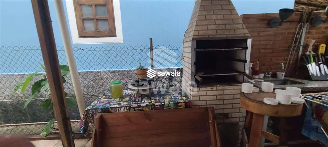 Casa duplex 1° Pavimento - Varanda frontal com jardim, área de lazer com churrasqueira