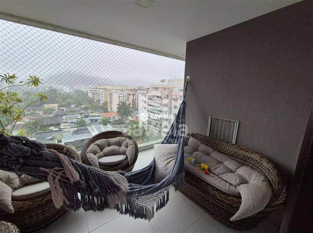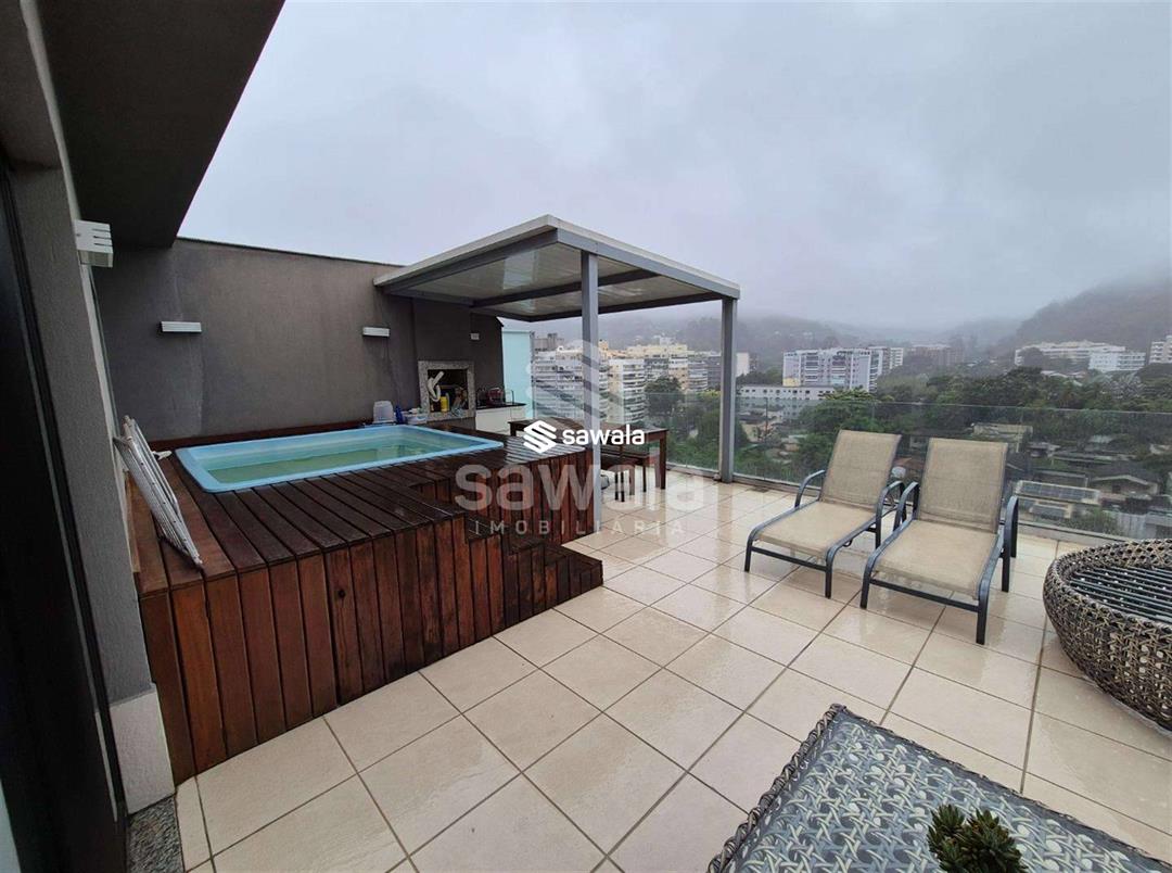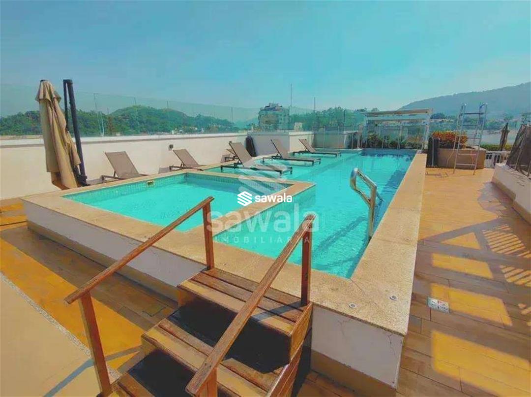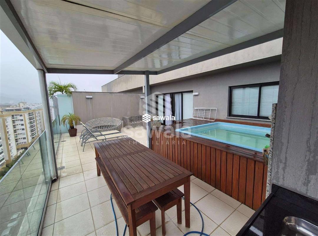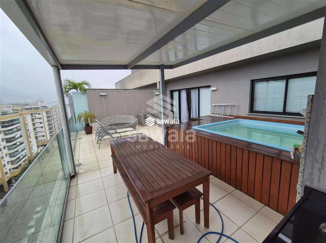 Cobertura Duplex - 213m² -  Raro Design Residence - FreguesiaPrimeiro pavimento:Varanda gourmet com bancada e pia de apoio, sala para 2 ambientes, piso porcelanato, banheiro social,3 quartos, sendo 2 suítes (com varanda compartilhada), todas com armários planejados.Cozinha planejada e área de serviço.Segundo pavimento:Saleta de apoio,  lavabo, suíte master com armários planejados, piso  porcelanato. Lazer:Piscina em fibra com deck de madeira, churrasqueira, pia e armário de apoio.Garagem:2 vagas de garagem.O condomínio Raro Design Residence conta com segurança 24 horas, piscina, espaço gourmet, salão de festas e áreas de lazer