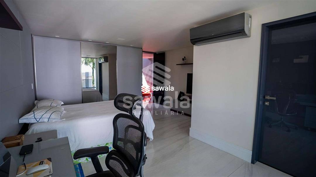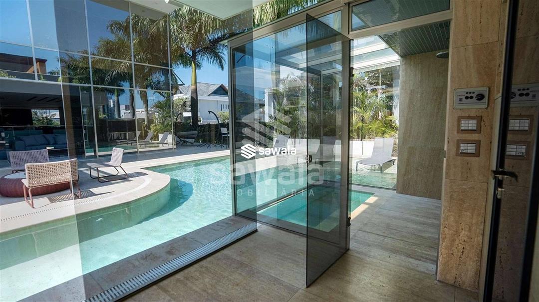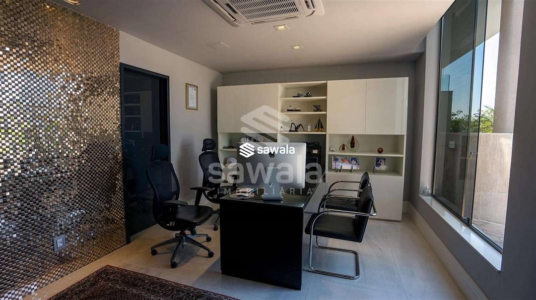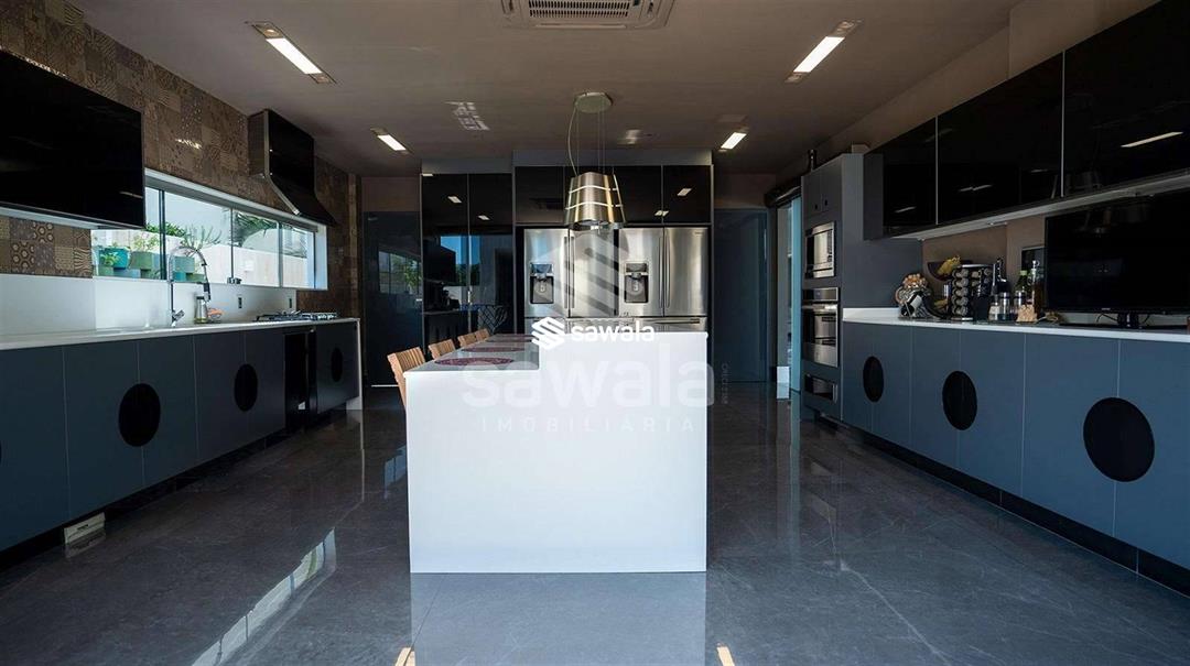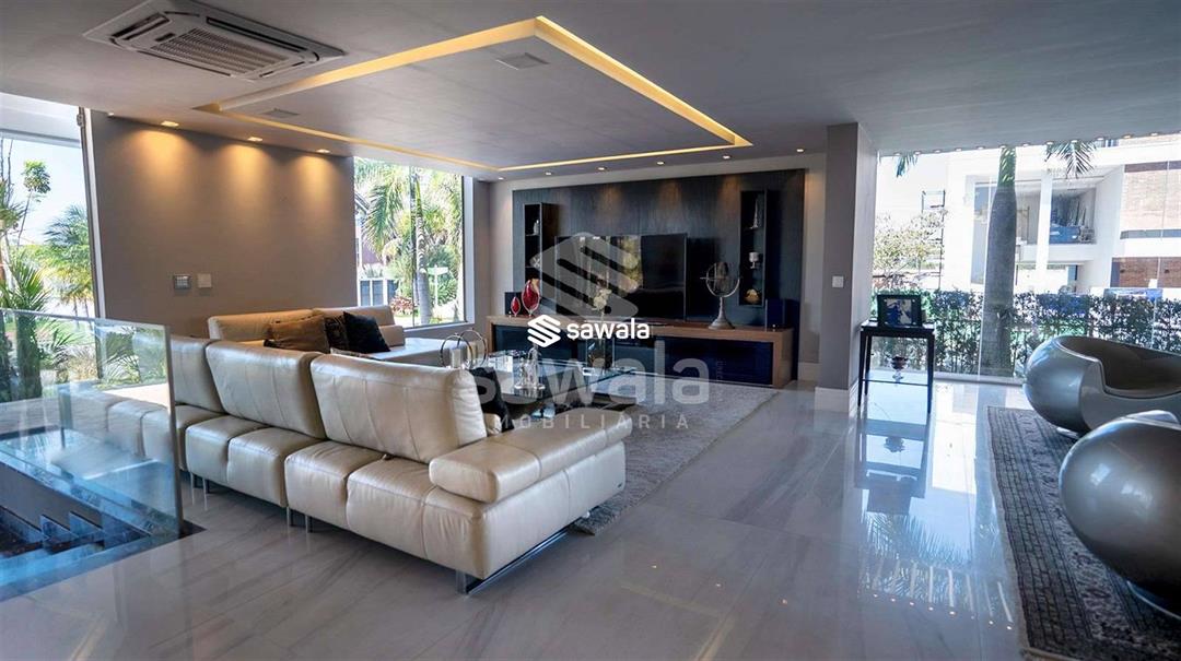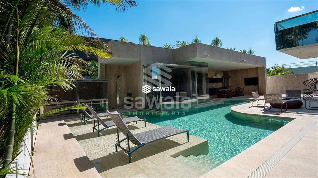 Diferencial com garagem subterrânea, terreno de esquina, com 900m² e mais de 1300m² de construção.1º Pavimento: Sala imensa dividida em 4 ambientes, escritório, copa / cozinha integrada ao lazer.Área de lazer com piso travertino romano, espaço gourmet com churrasqueira, piscina com prainha, sauna com mergulho e lindíssimo paisagismo.2º Pavimento: Composto por 4 suítes com varanda