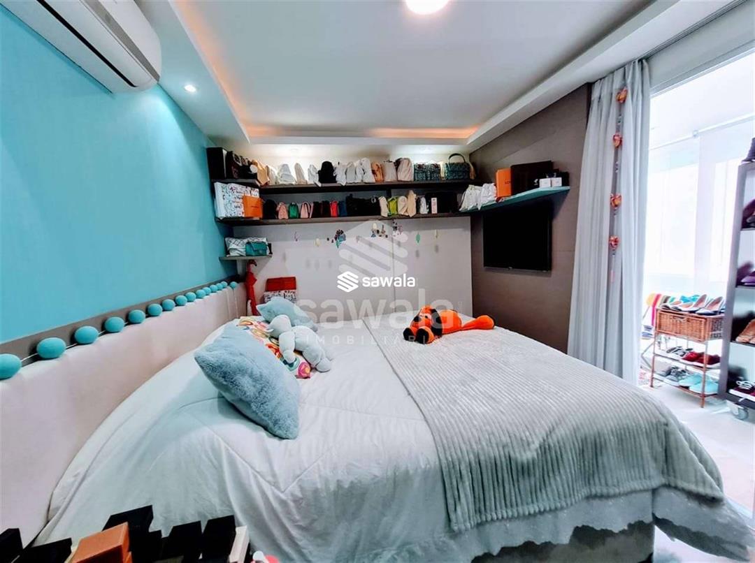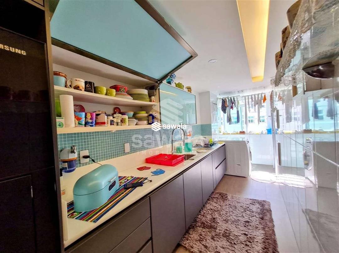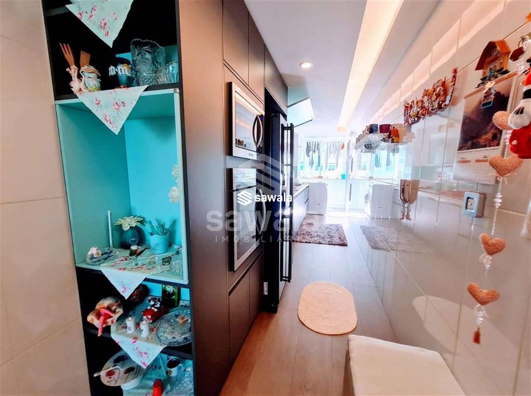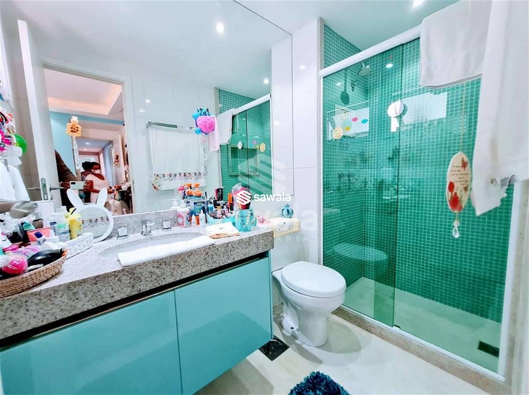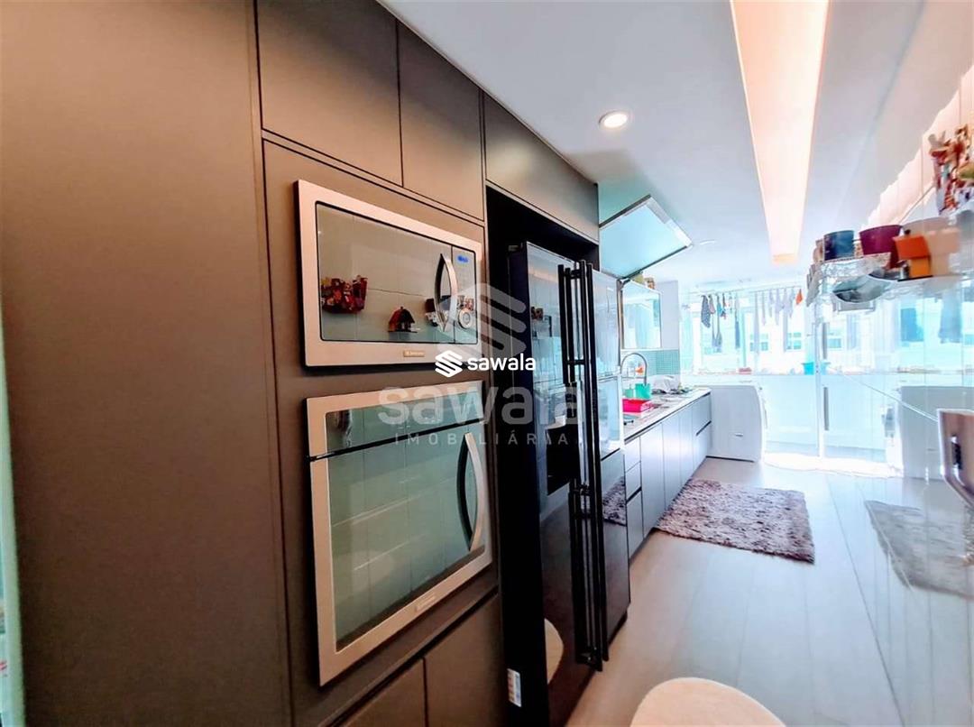 Apartamento com todos os ambientes com móveis planejados, blindex nos banheiros e cortina de vidro nas varandas