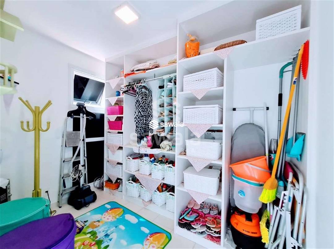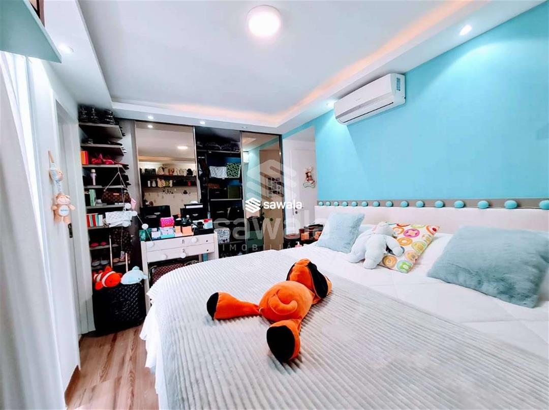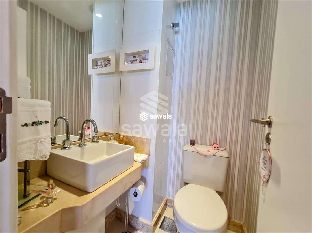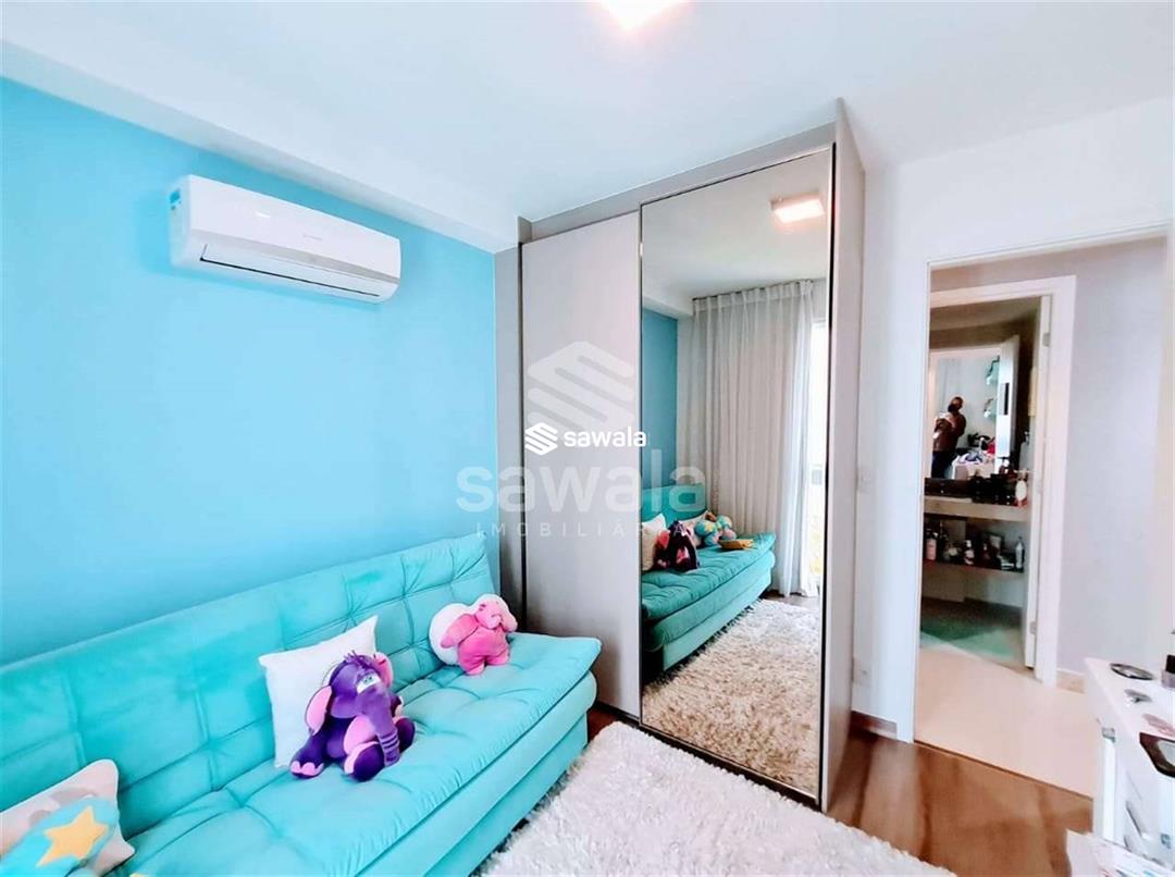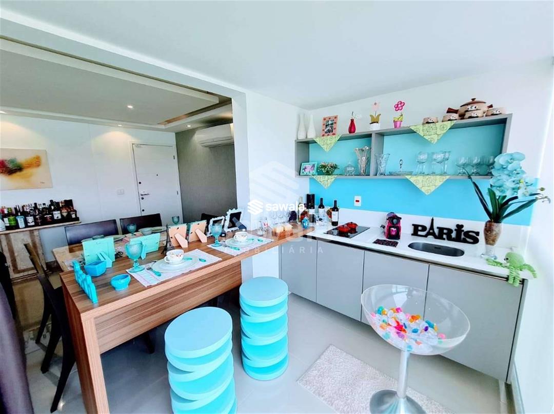 Apartamento com todos os ambientes com móveis planejados, blindex nos banheiros e cortina de vidro nas varandas