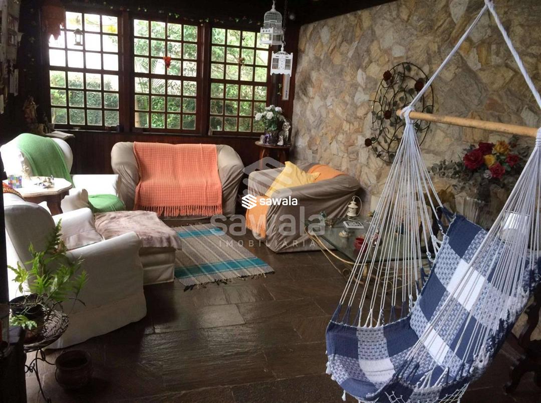 Varanda, sala, 4 quartos sendo 1 suíte, lavabo, copa-cozinha, área de serviço e dependência completa . Área de lazer: piscina jardim