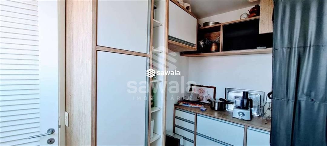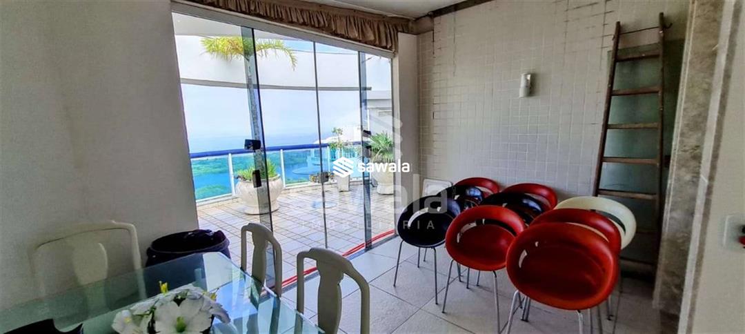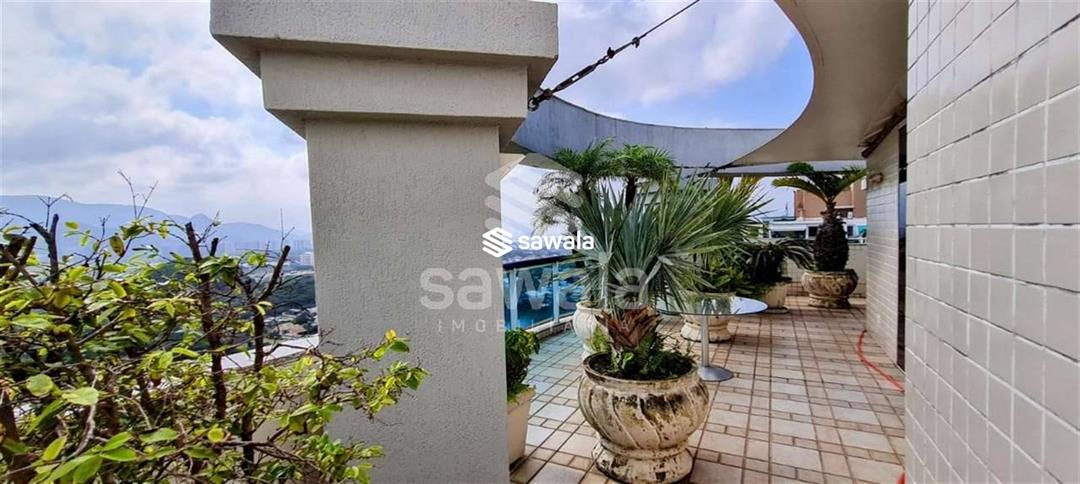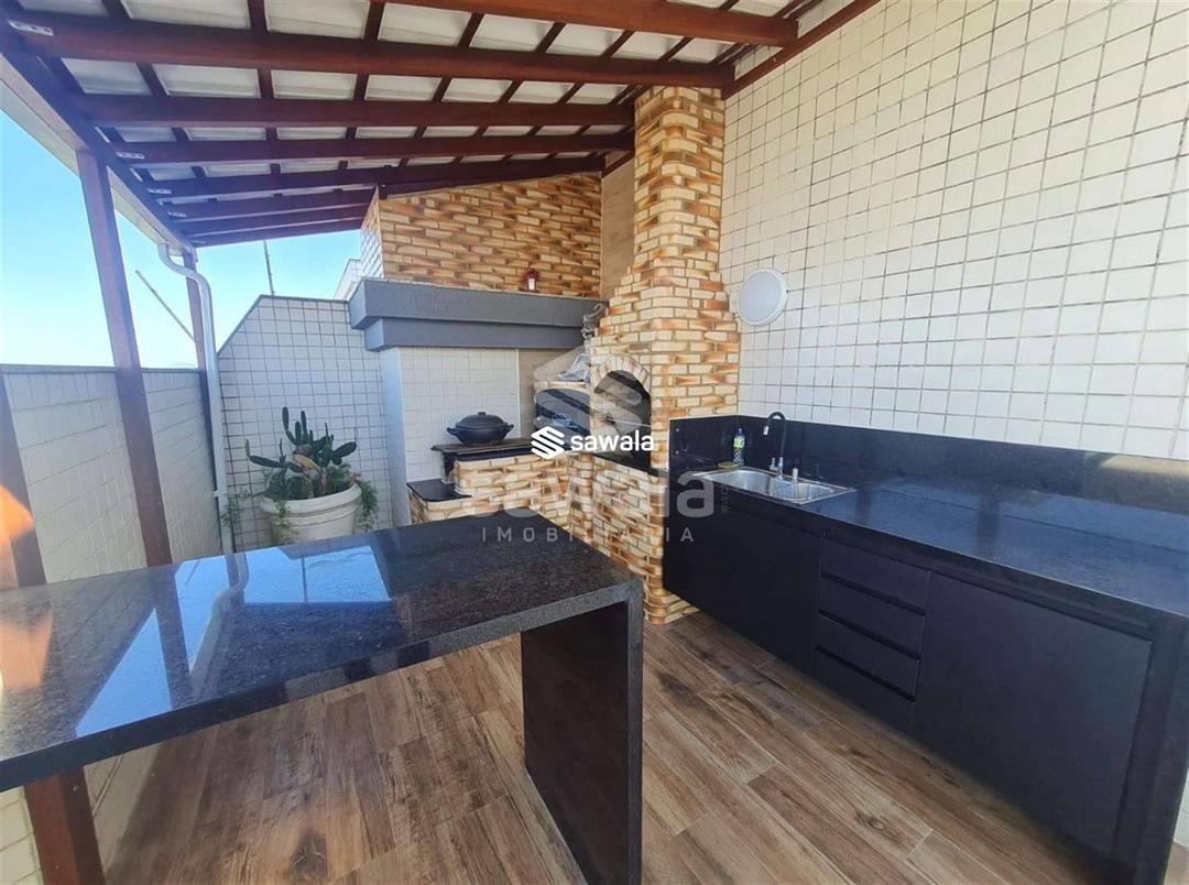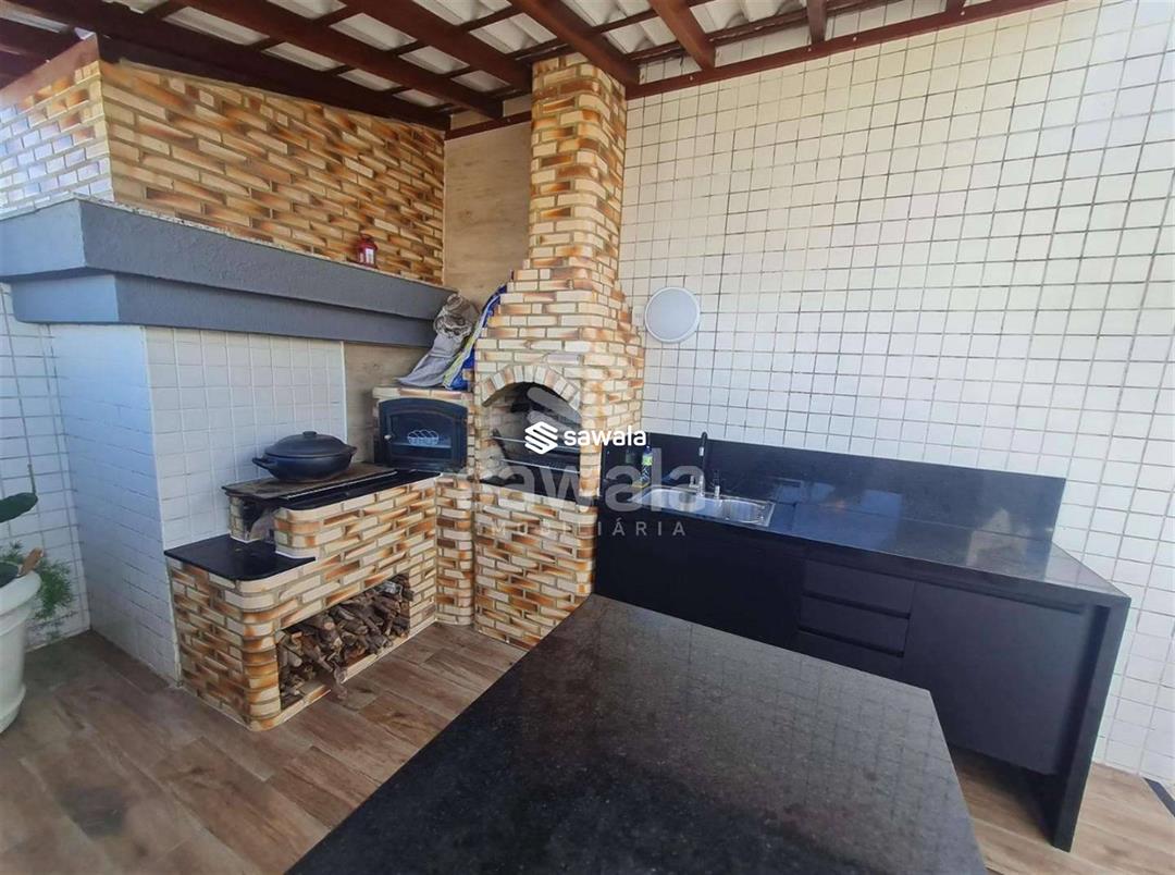 Terraço panorâmico com churrasqueira e bancada de apoio