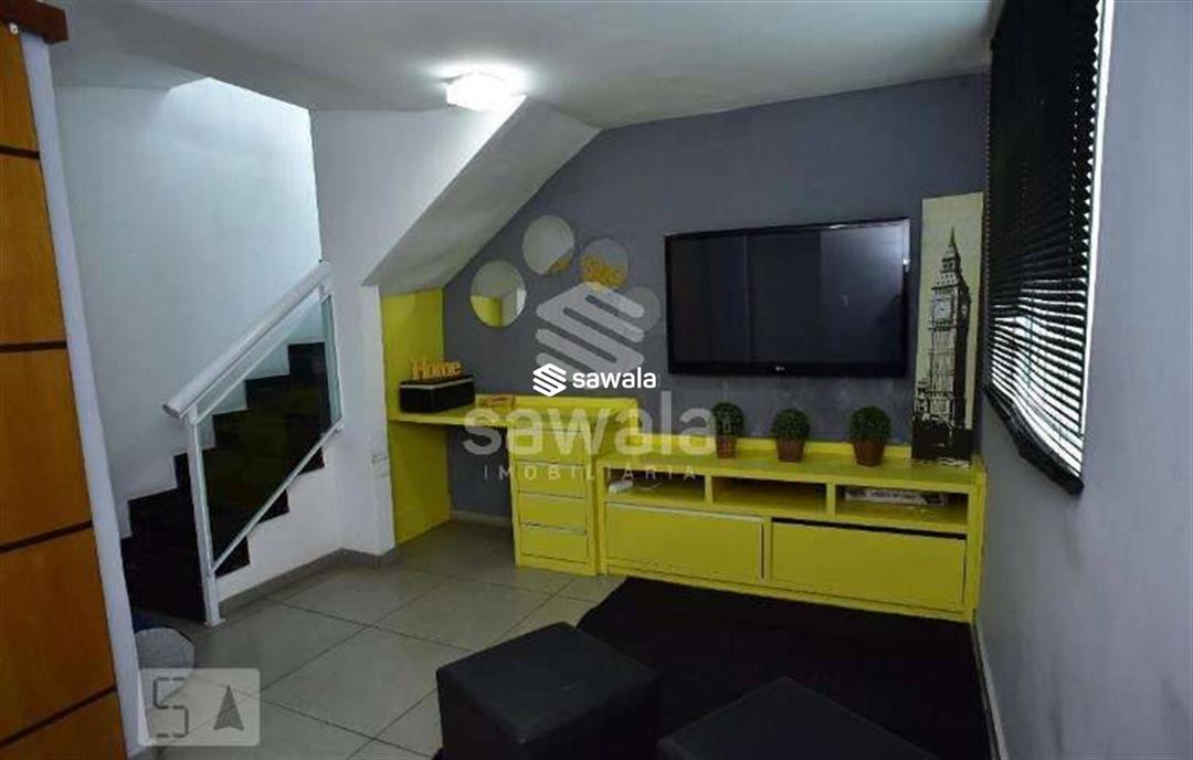 No 1o andar ficam a sala, a cozinha e um lavabo