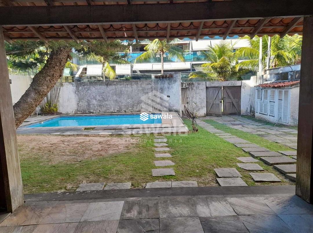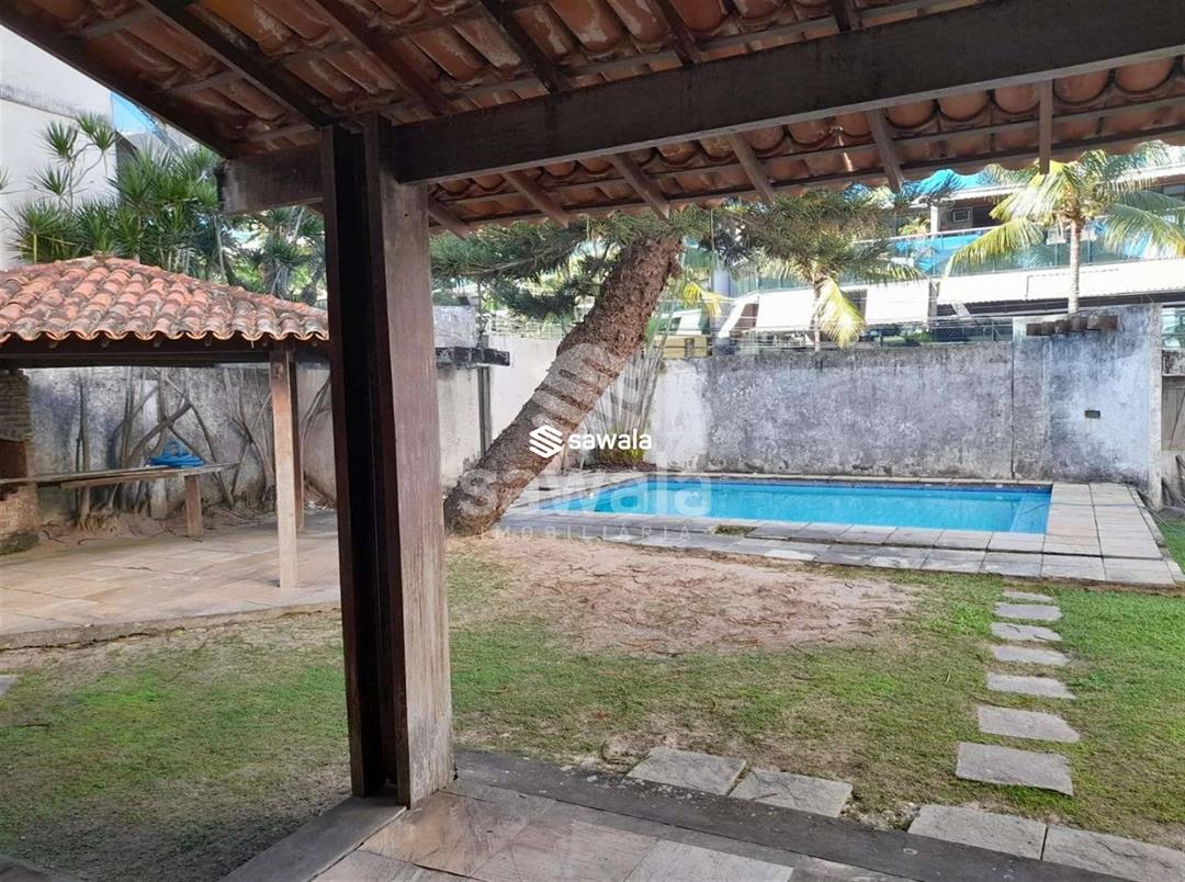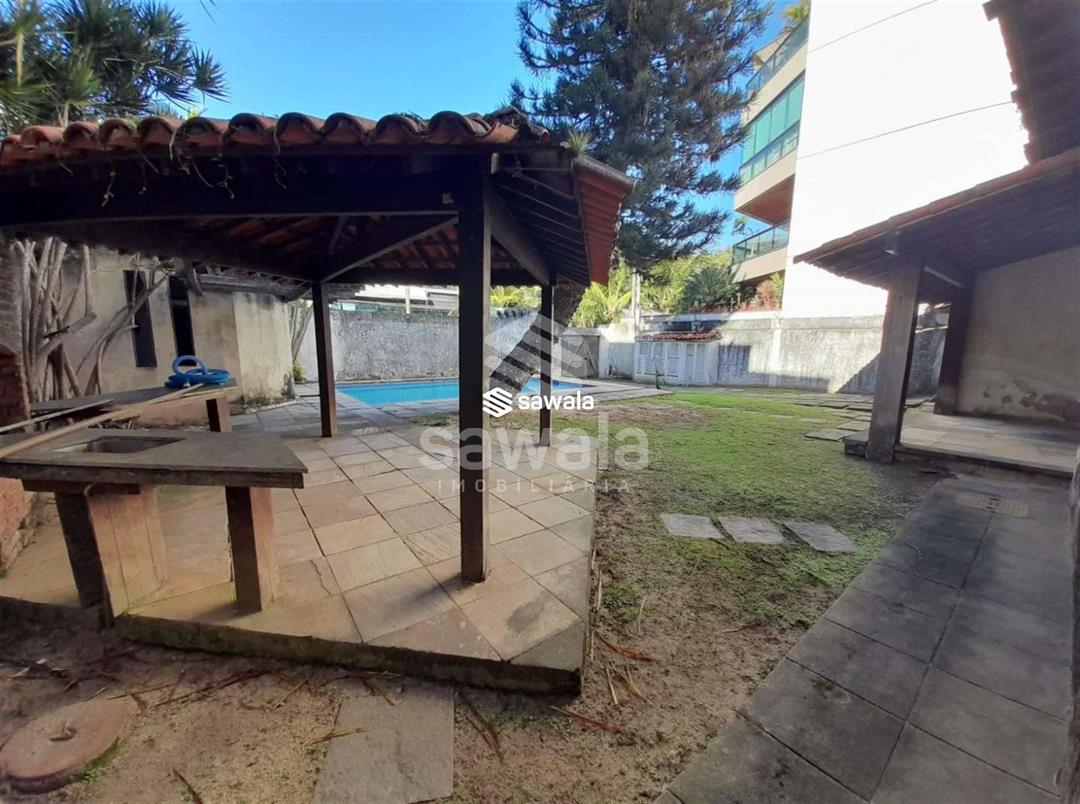 salão ,3 quartos sendo uma suíte.Banheiro social e lavabo .Dependência de empregada .área de serviço e cozinha ampla .Terreno na frente espaçoso com uma piscina e, alvenaria .Churrasqueira .Vaga para 4 carros ..Documentação cristalina .