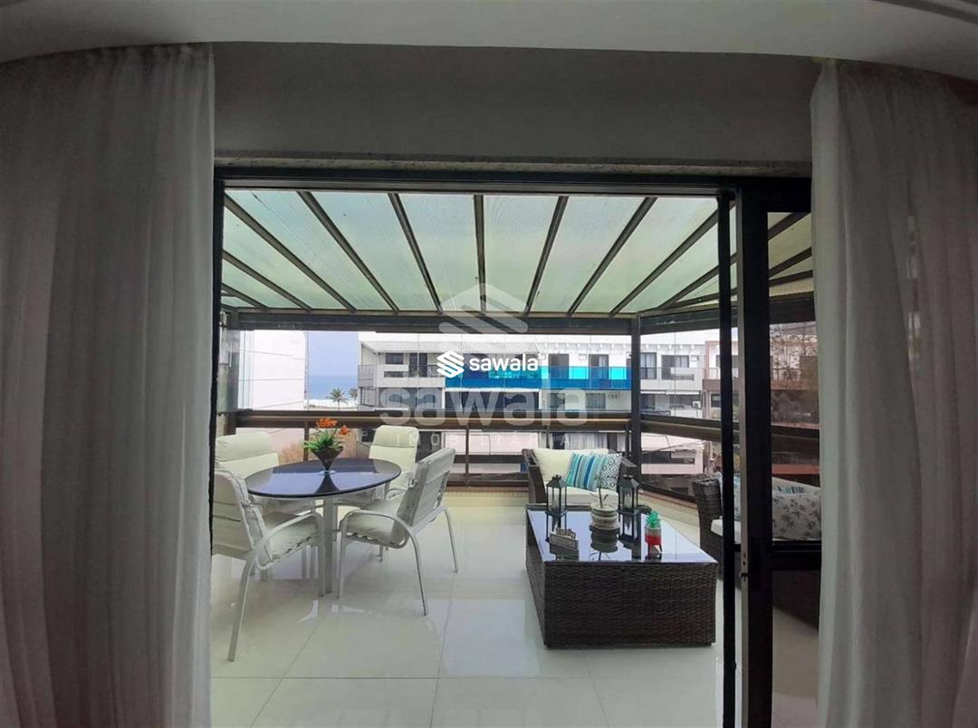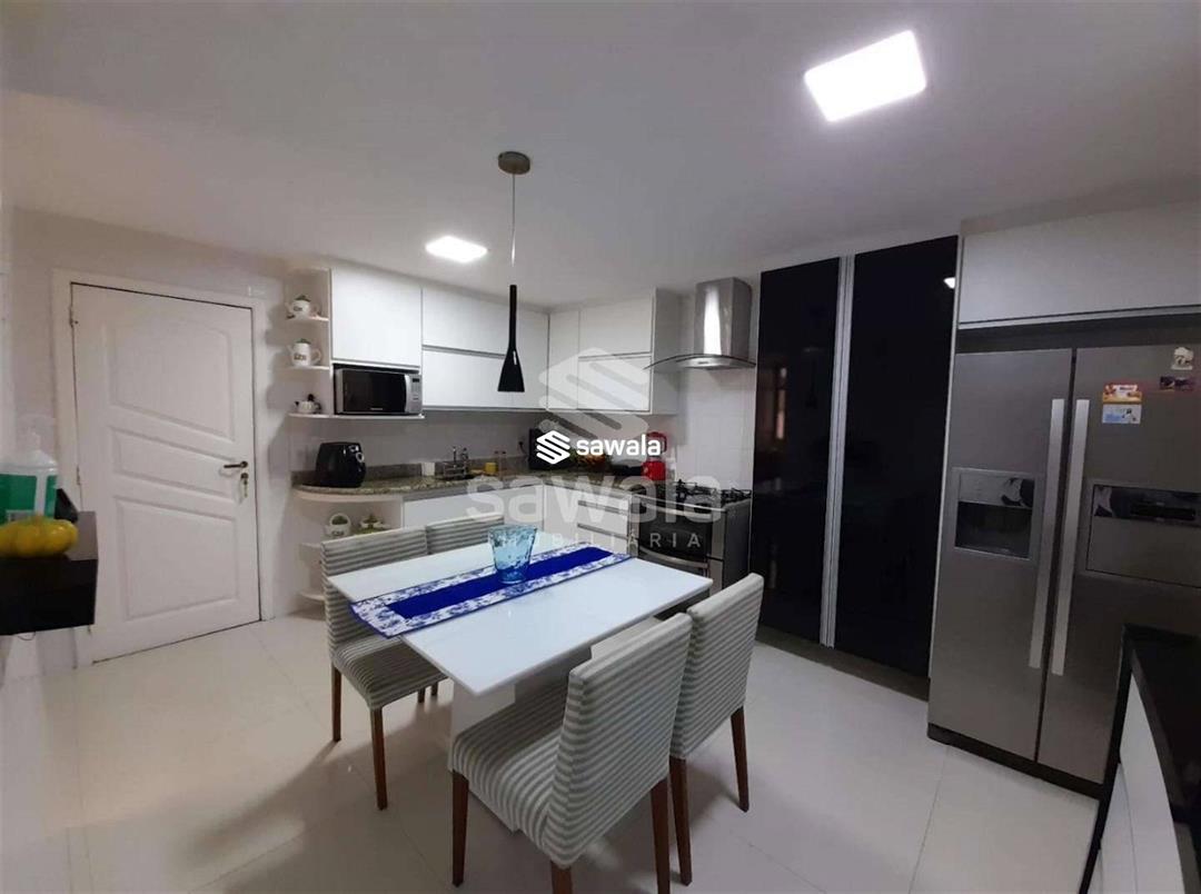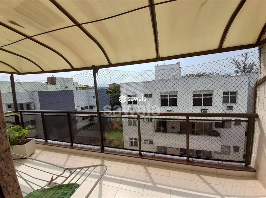 cobertura na melhor quadra do recreio dos bandeirantes, varanda confortável com fechamento em cortina de blindex, sala em três ambientes com rebaixamento de teto e iluminação em led, lavabo, três quartos suites com armários, cozinha com armários planejados, área de serviço