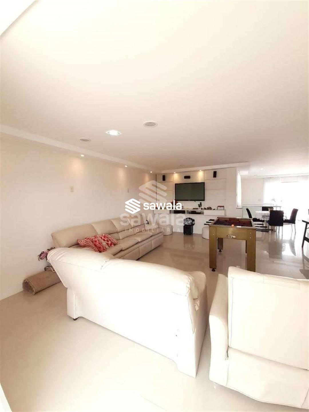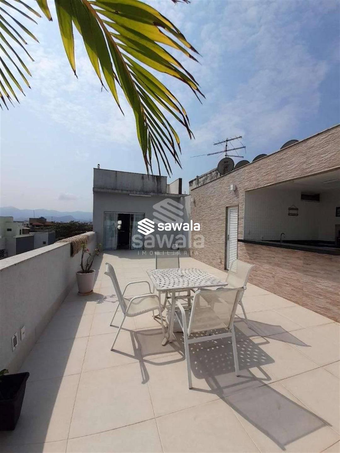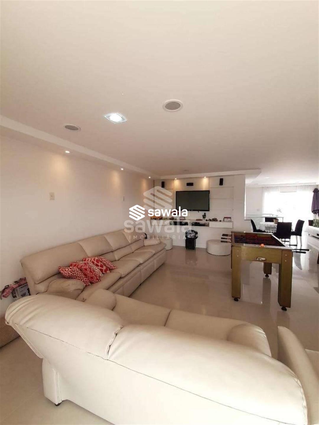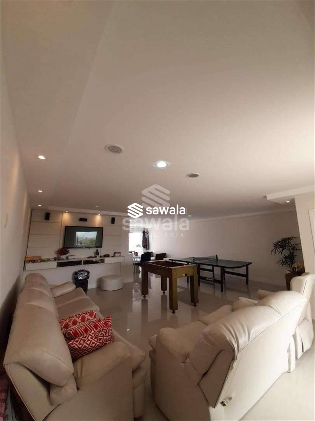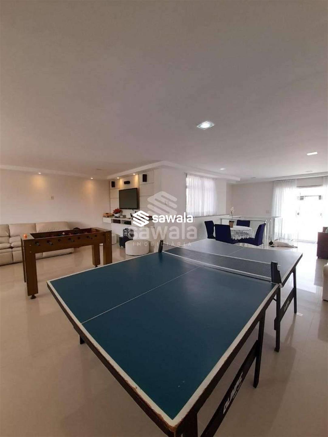 Na parte superior terraço com amplo salão para jogos, estar e lazer